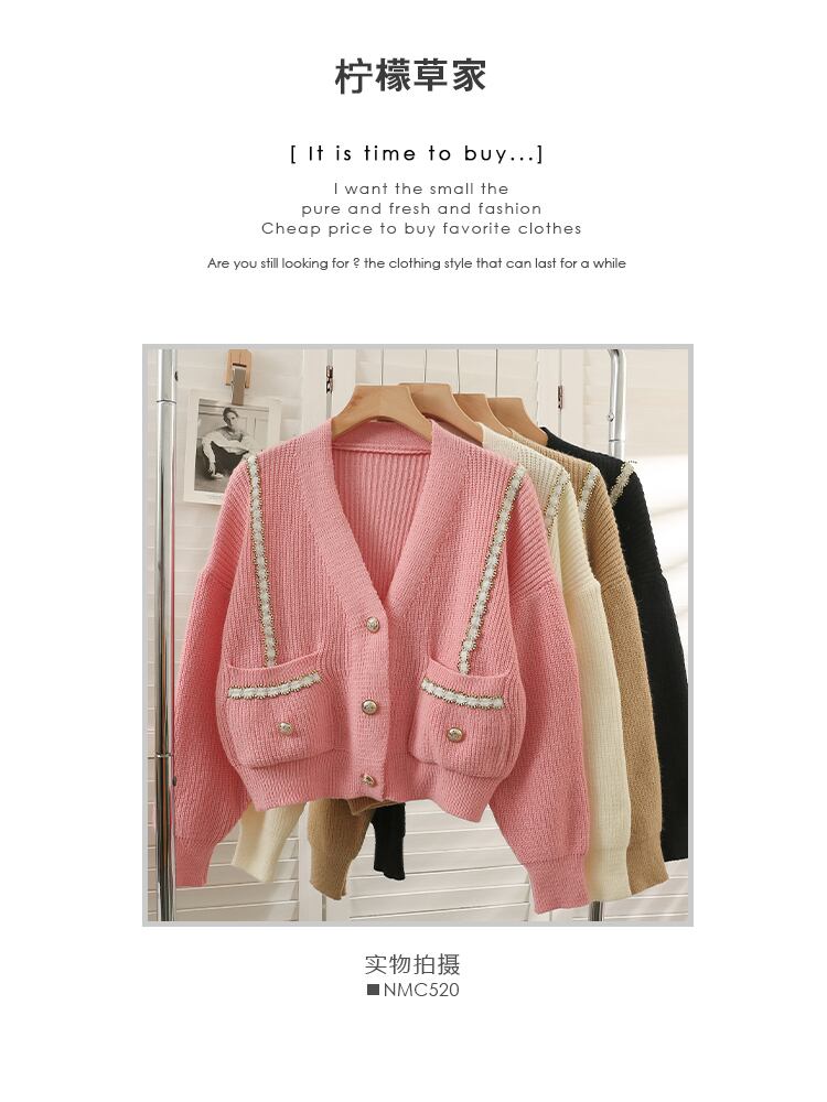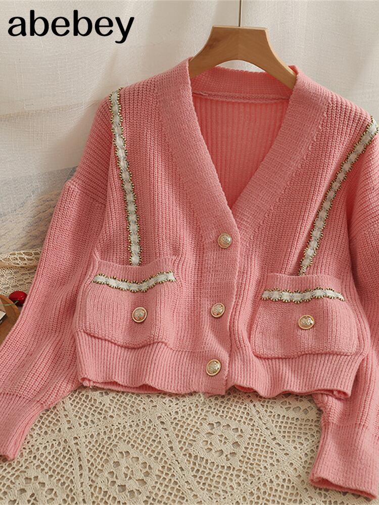 セーター女性の2022年秋ショート3ボタンカーディガンラージポケットトップルーズシンVネック長袖セーター ロング オータム 秋物 Abe33245804117