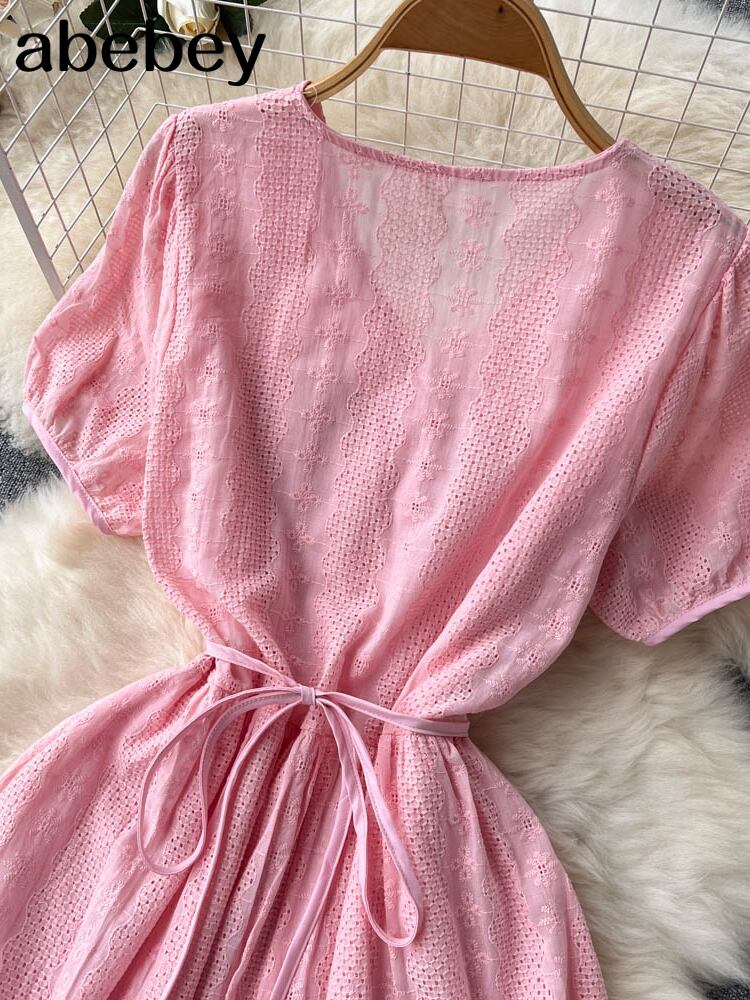 女性フレンチレースドレススウィート半袖VネックAラインマーメイドドレスサマージェントルショートサンドレス ハーフスリーブ 大人ガーリー キュート カジュアル 夏物 Abe39761521912