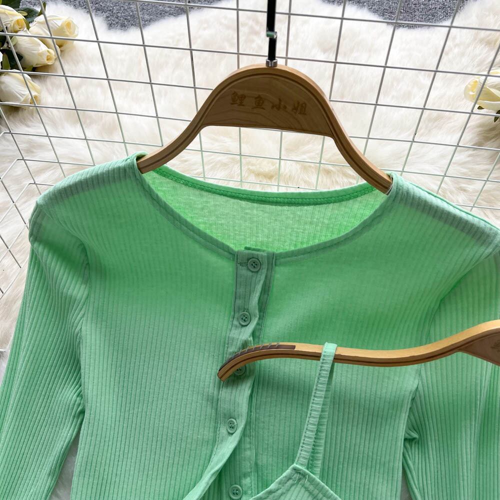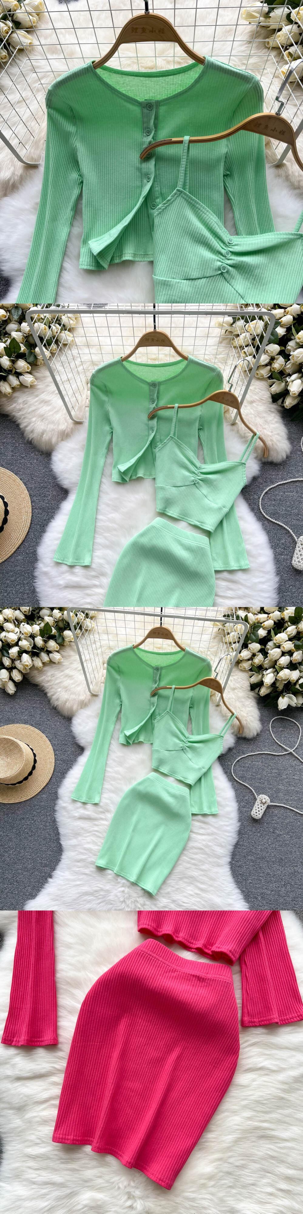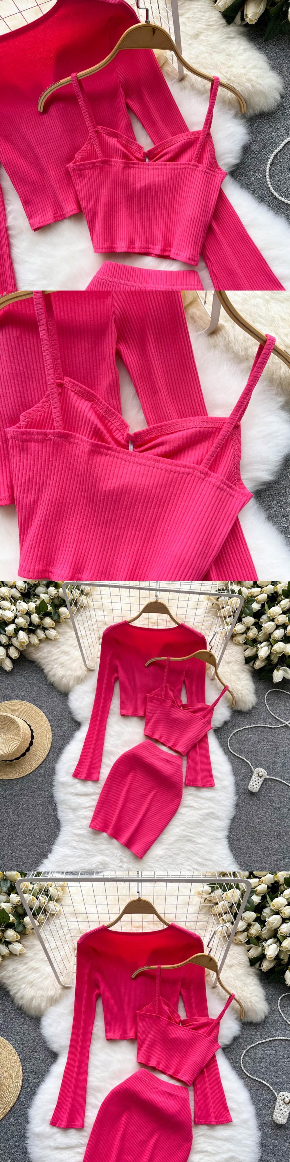 スウィートウーマンスリーピースセットソリッドピンクサマーカーディガンセーターショートストラップキャミスツーピースセット+ボディコンミニスカート 大人ガーリー キュート カジュアル 夏物 ソリッドカラー Abe9985033182