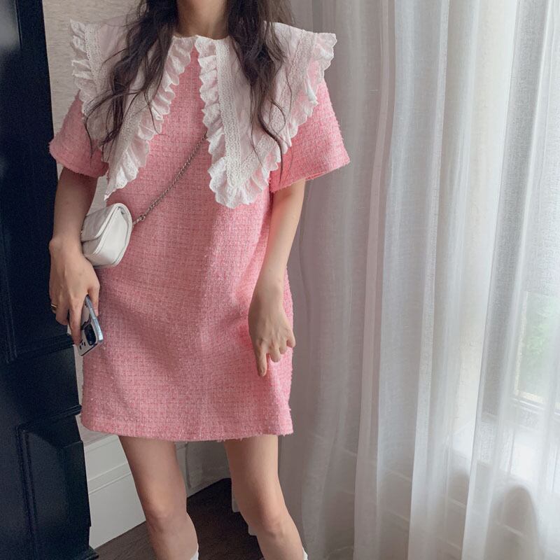 女性のドレス2021年秋のシックな女の子甘い気質人形ラペルレースステッチルーズツイードドレスVestido 大人ガーリー スウィート キュート カジュアル オータム 秋物 Rhc4269847650
