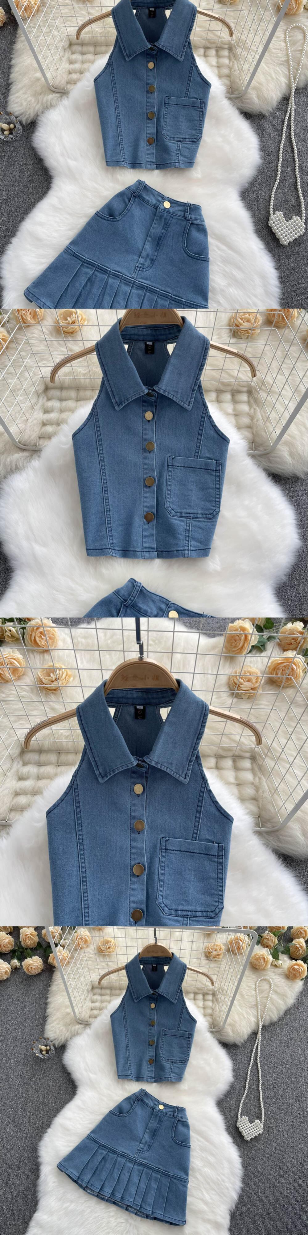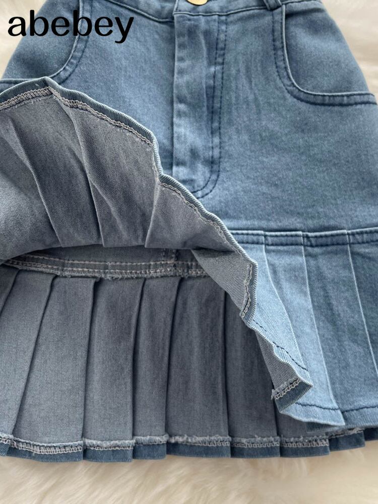 サマーブルーデニムツーピーススカートセットレディースジーンズストリートウェアタンクビスチェクロップトップ+ミニショートスカートクラブセット 夏物 Abe32862197328