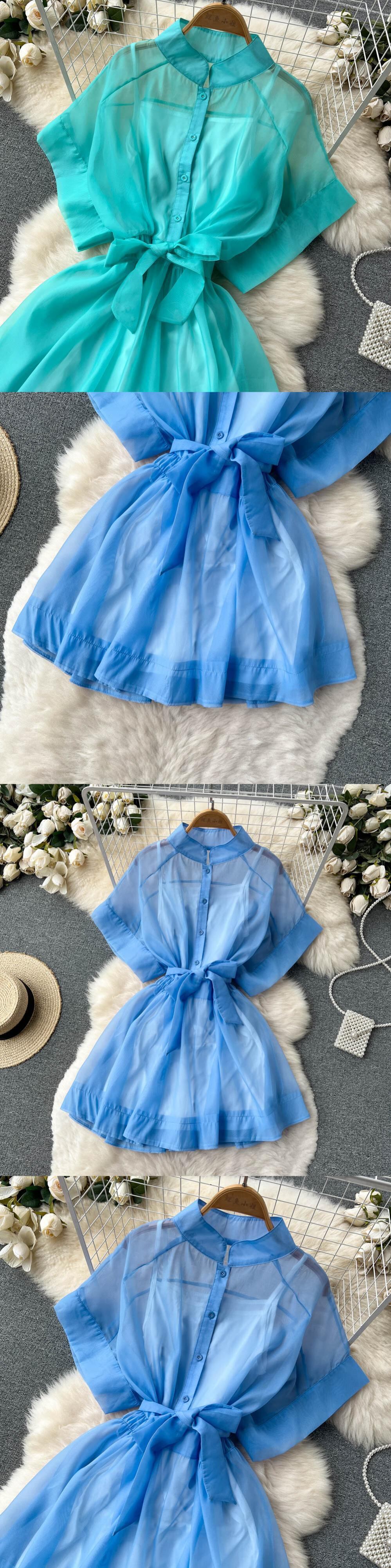 2022年サマースタンドカラーシングルブレスト日焼け止めショートドレス+スリングアンダードレス女性2個スーツ 夏物 Abe10648230850