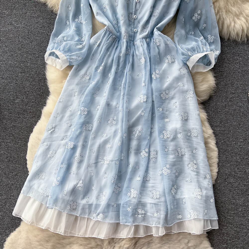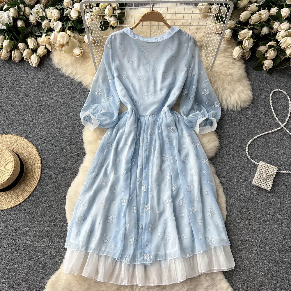 女性エレガントな刺繍フリルメッシュシアーパーティーディナードレスAラインサマーレディヴェスティドス2022 ラッフル 夏物 Abe46443247334