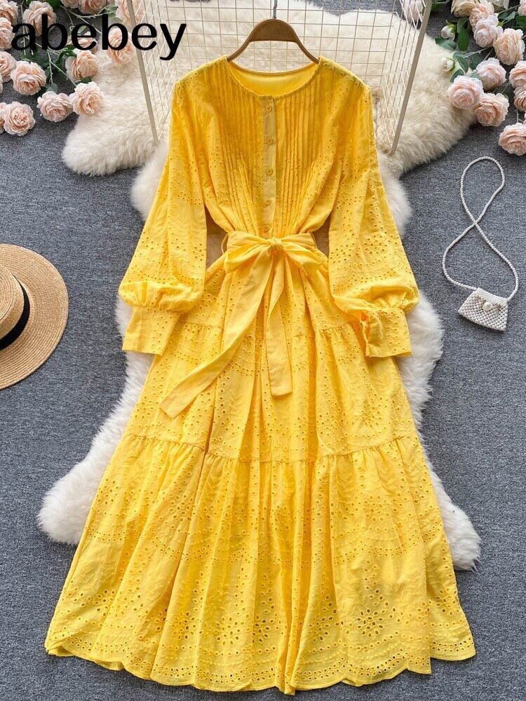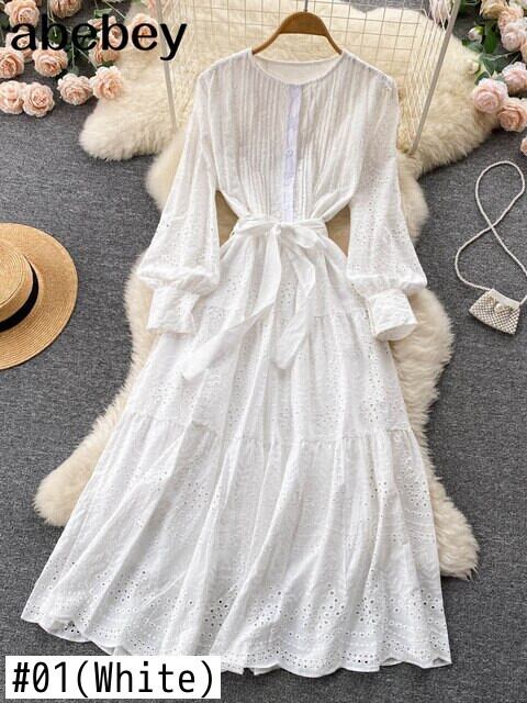 ホワイト/グリーン/ピンク2022サマーレース刺繡ドレス女性長袖ドレスパーティービーチマキシロングドレス 刺繍 夏物 Abe18422296295