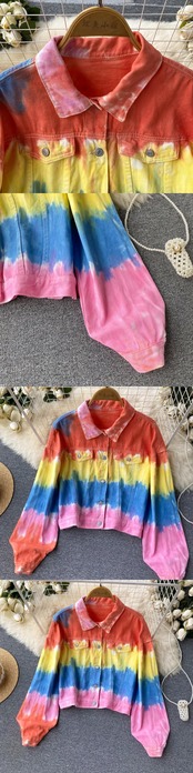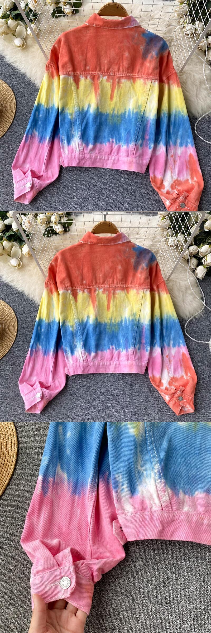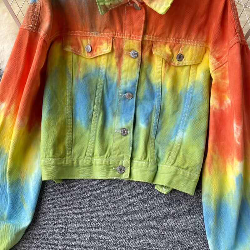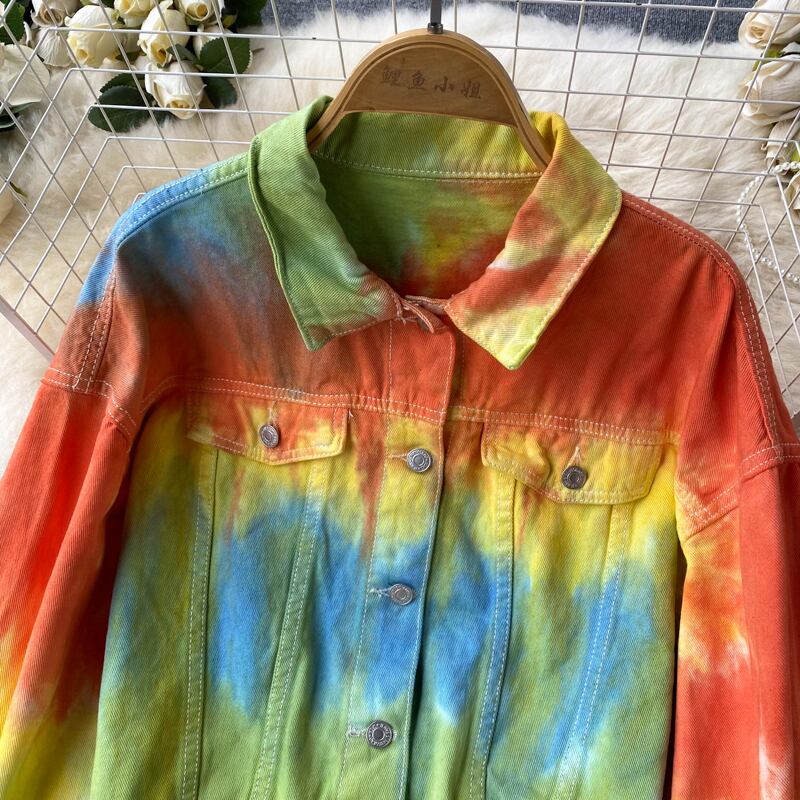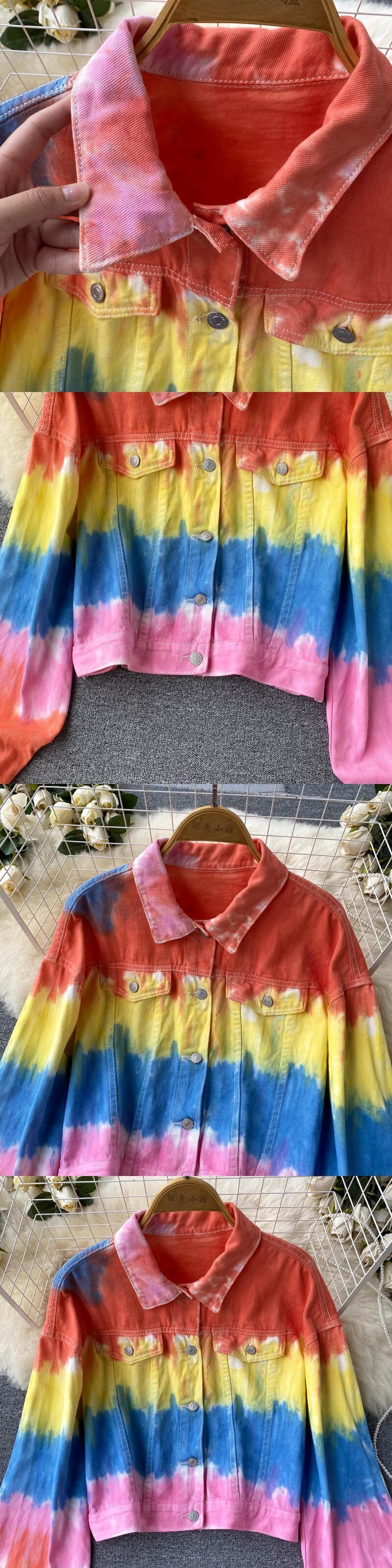 デニムジャケットレディースベーシックコート2022グラデーション秋長袖ワイルドアウターデニムコートジャケット ロング オータム 秋物 Abe59287908737