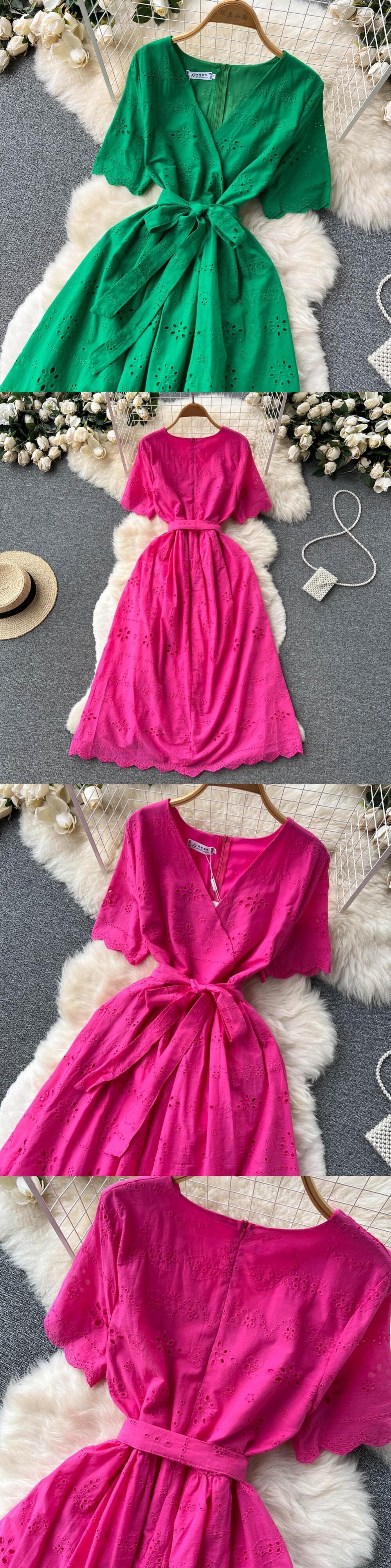 2022グリーン/ホワイト/ピンクサマーレース刺繡ドレス女性半袖ドレスパーティービーチマキシロングドレス ショート ハーフスリーブ 刺繍 夏物 Abe15596612982