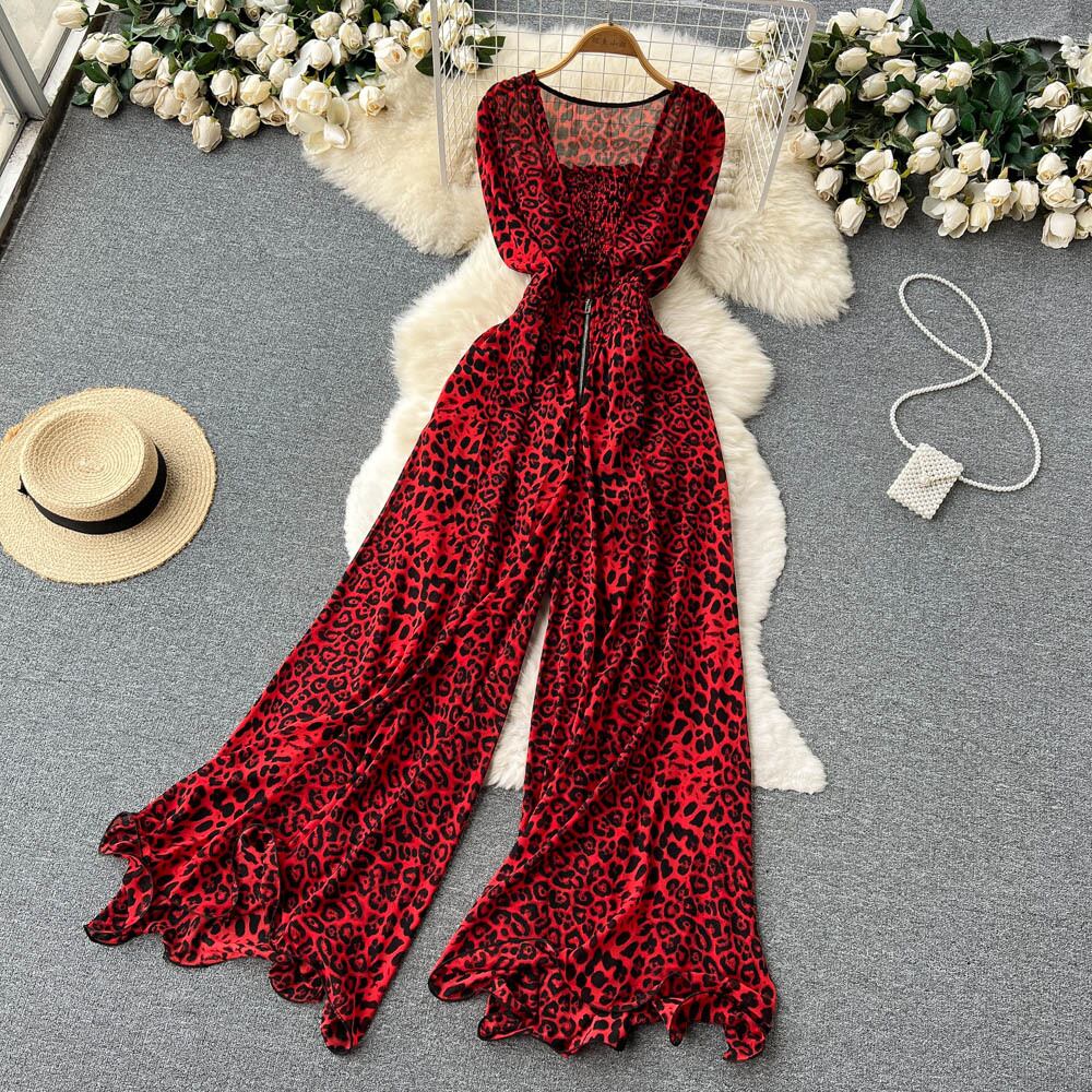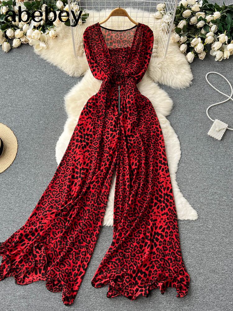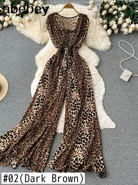 ルーズレオパードプリントチューブトップジャンプスーツ2022夏のセクシーなノースリーブ中空アウトレースアップロンパース女性のズボンの衣装 サマー 夏物 Abe41814402296