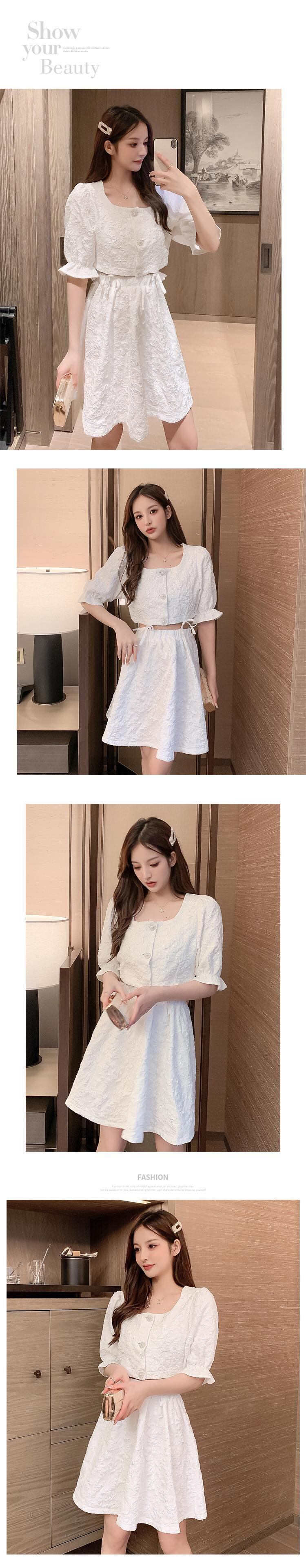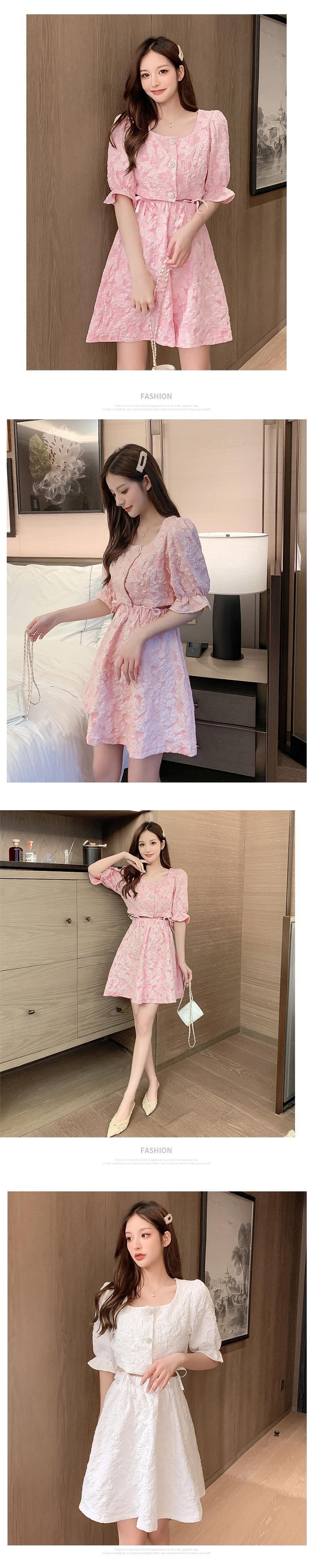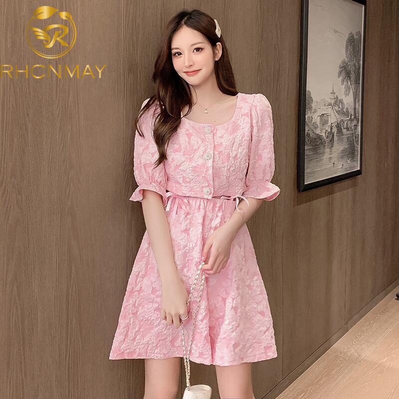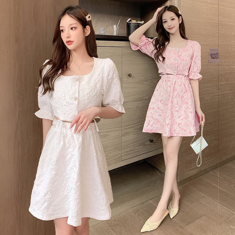 夏の女の子かわいいピンクのツーピースセット女性花柄エンボススクエアカラークロップトップ+レースアップボールガウンジャカードスカート衣装 レッド 大人ガーリー スウィート キュート カジュアル サマー 夏物 スクウェア Rhc1227849648