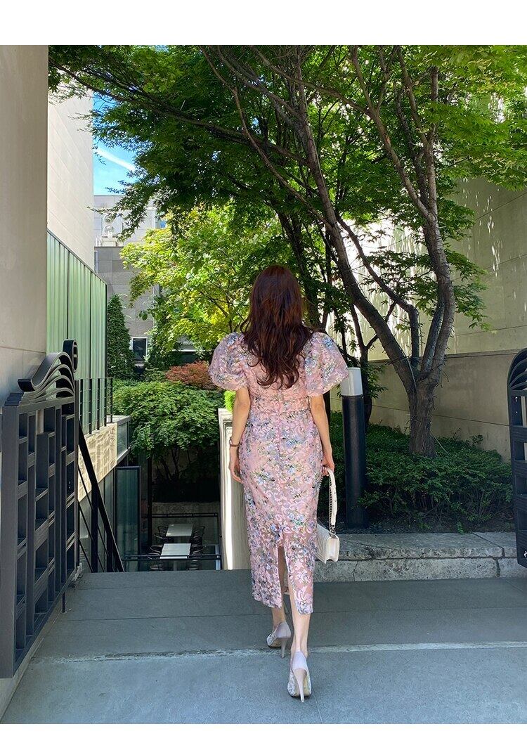女性の2021年ランタンスリーブプリントドレスOネックイブニングパーティードレスオーガンザワークロングVestidos Rhc38746349986