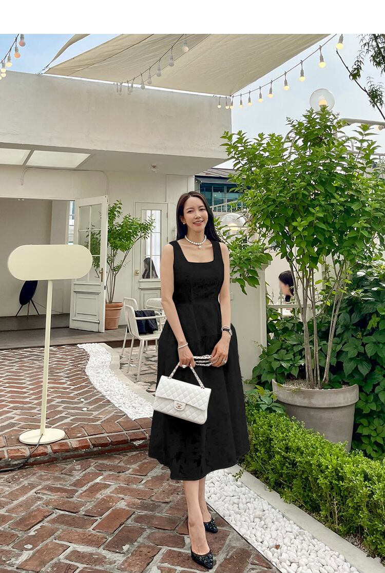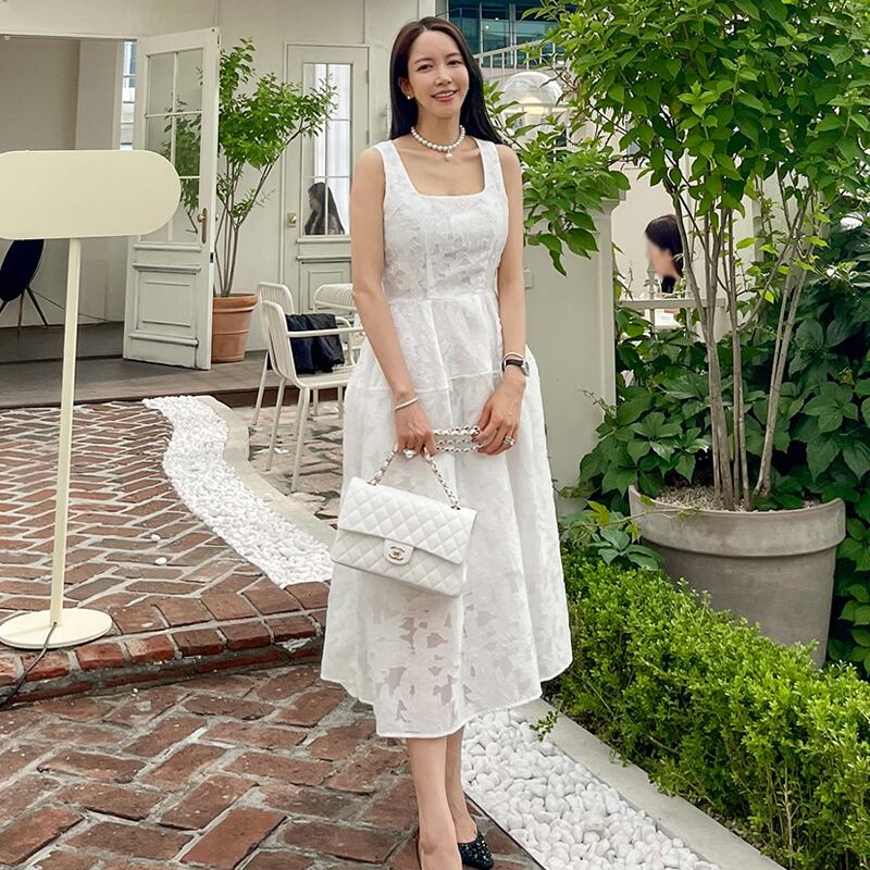 女性の夏のソリッドキャミソールドレスセクシーな背中の開いたスクエアカラー中空アウトジャカードパーティーロングドレス サマー 夏物 ソリッドカラー スクウェア Rhc27979257894