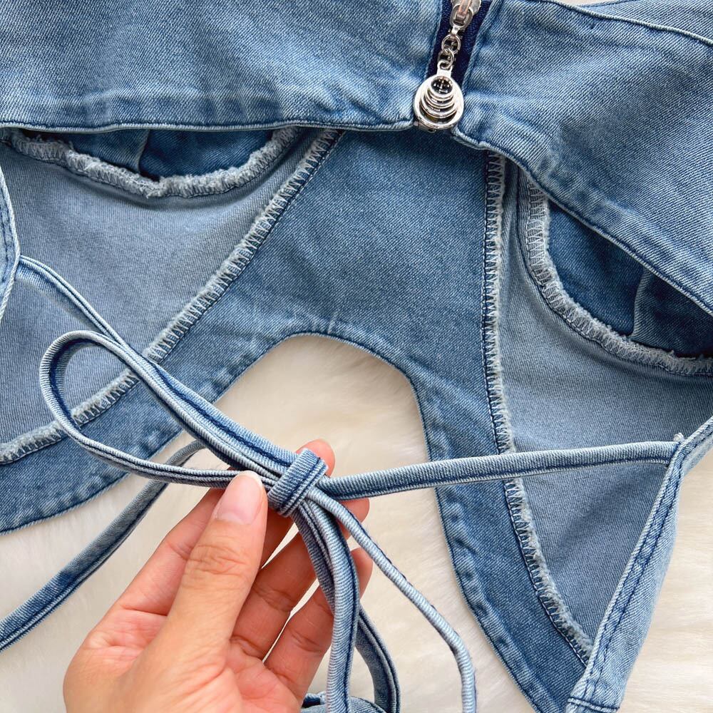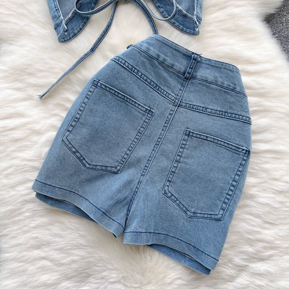 夏のプレッピースタイルかわいいソリッドVネックタンクトップウエストミニAラインジーンズスカートスーツ女性の衣装 大人ガーリー スウィート キュート カジュアル サマー 夏物 ソリッドカラー Abe81721576269