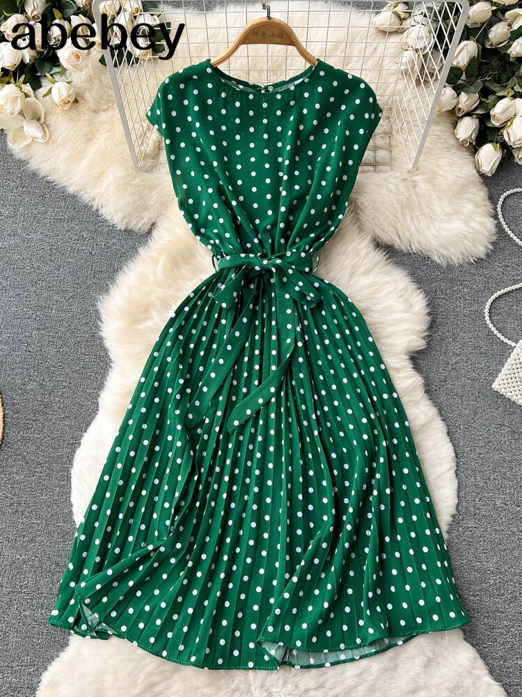 夏のパーティーミディドレス女性ボヘミアンプリントサンドレスセクシーサッシュ水玉ドレスローブ2022OネックVestidosローブ サマー 夏物 Abe89712635059