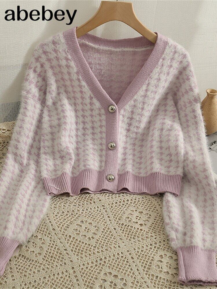 2022Vネックニットカーディガンウィンターアーガイルシングルブレストレディースセーターコートオータムルーズニットカーディガンジャケット 秋物 冬物 Abe72786422513