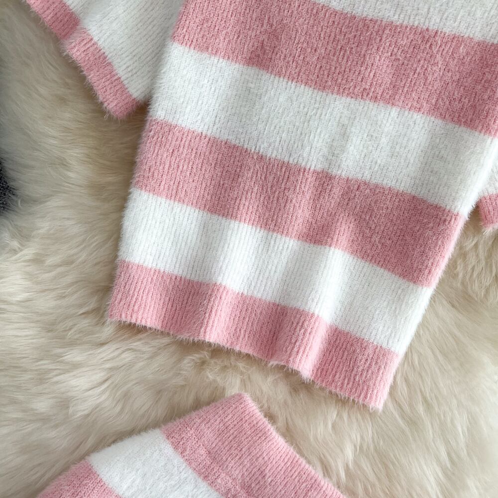モヘアニットツーピースセット女性クロップドプルオーバートップススリムボディコンミニスカートスーツ2個ルーパス Rhc69500360662