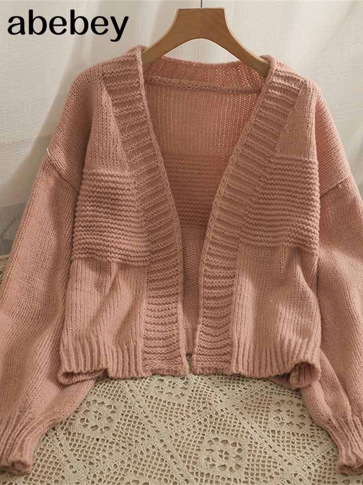 2022年カーディガン秋長袖半袖半セーター女性リブ編みコットントップスブラックホワイトソフトアウトウェア ショート ロング オータム 秋物 Abe82604152294