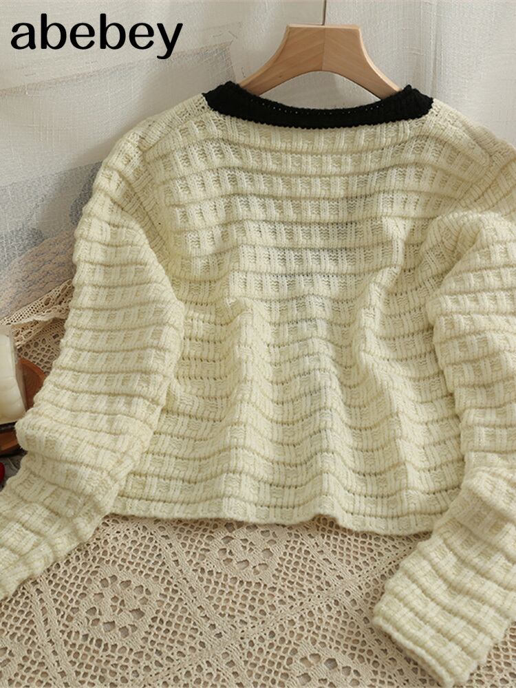 ポケットのある女性ルーズニットカーディガンセーター長袖ボタンアップアウターシックなクロップドトップス ロング Abe69668682748