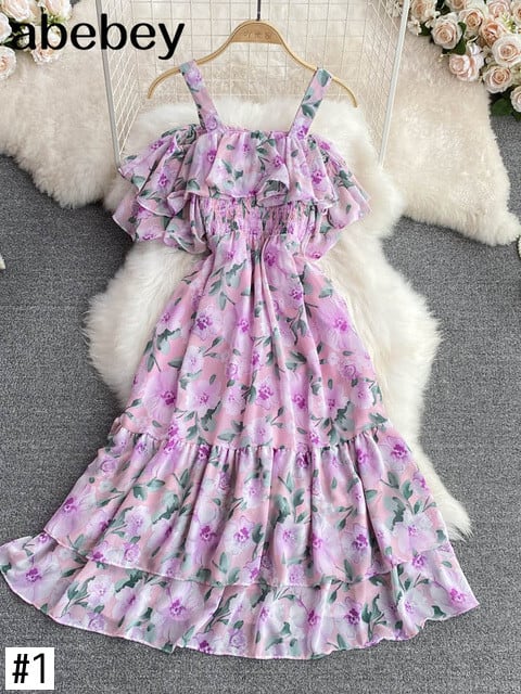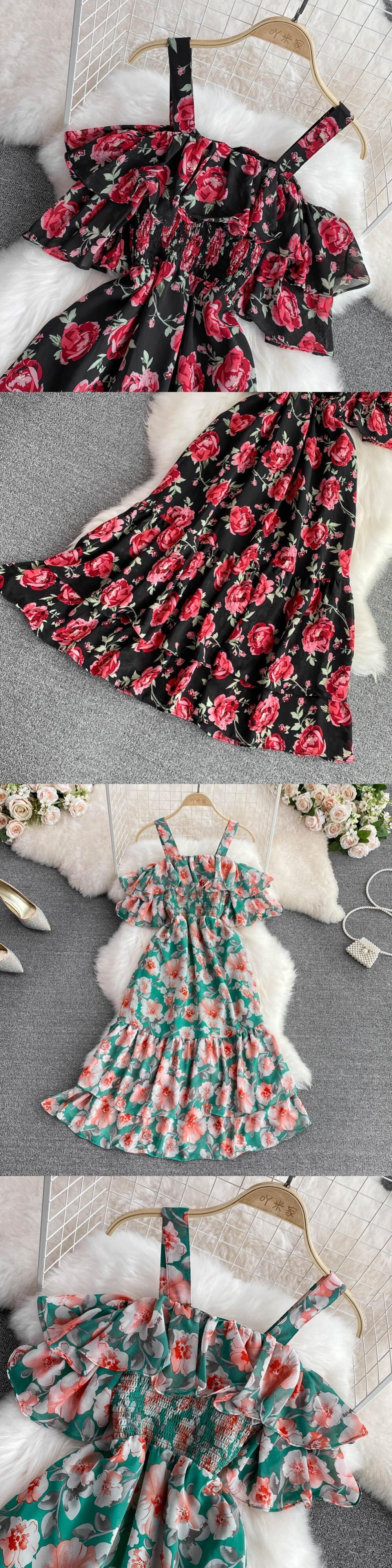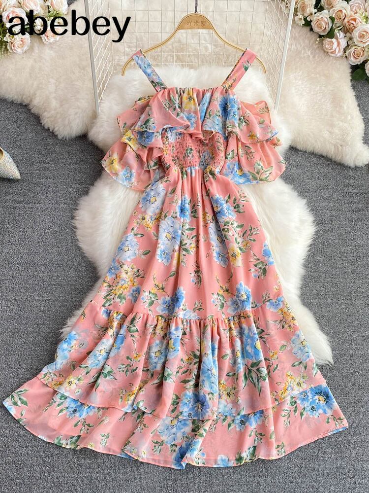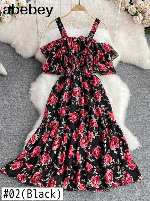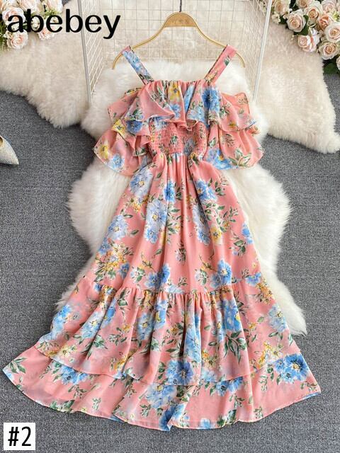 夏のセクシーなスラッシュネックスパゲッティストラップミディドレス女性オフショルダー半袖バケーションビーチローブ ショート ハーフスリーブ サマー 夏物 Abe95622437520