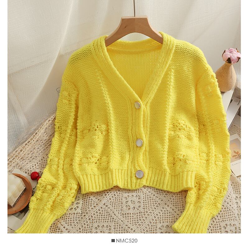 女性クロップドカーディガン女性セーターボタン長袖ニットカーディガンセータージャケットコート2022 ロング Abe25365867024