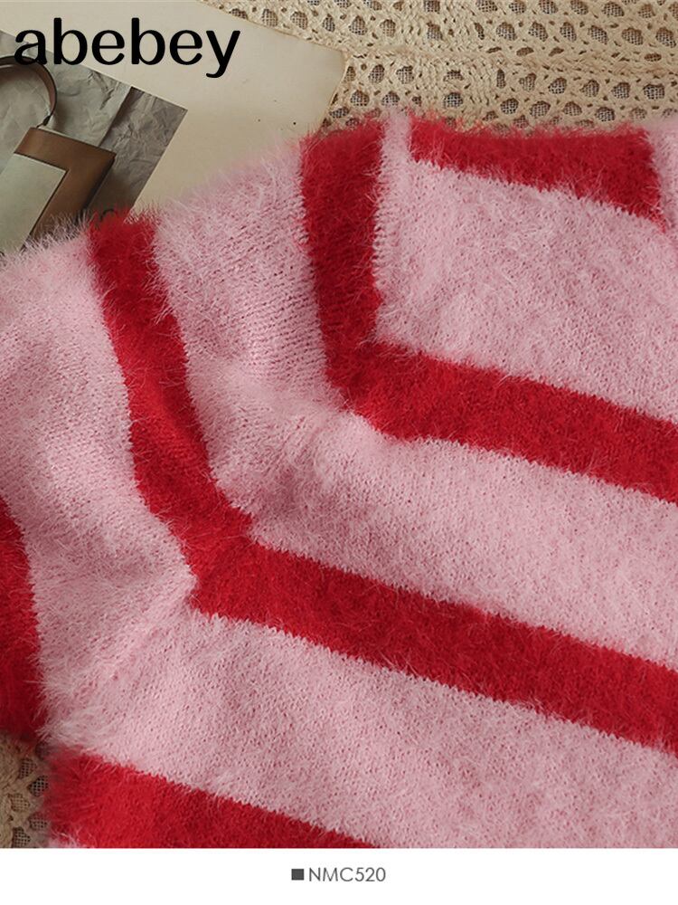 女性 O ネック ストライプ セーター プルオーバー ルーズ ロング スリーブ ジャンパー 秋 ショルダー Kintting トップス 長袖 オータム 秋物 Oネック Abe37622723928