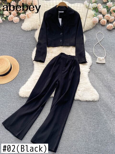 女性のOLツーピースセット長袖ジャケット+ワイドレッグロングパンツスタイル秋のビジネススーツ オータム 秋物 ワイドパンツ 会社 学校 通勤や通学にも Abe69367405839