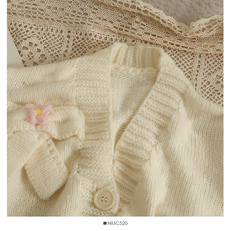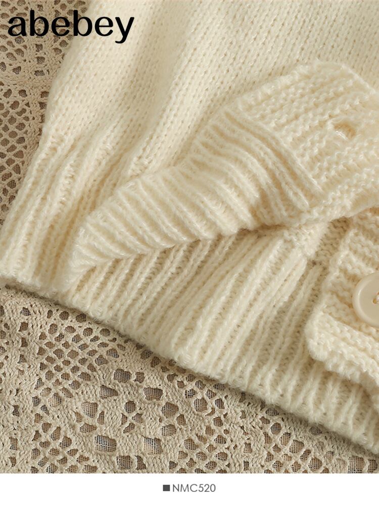 カーディガン女性ニッチちょう結びリネンパターン 2022 秋長袖シングルブレストニットジャケットホワイトトップス ロング リボン Abe21784353507