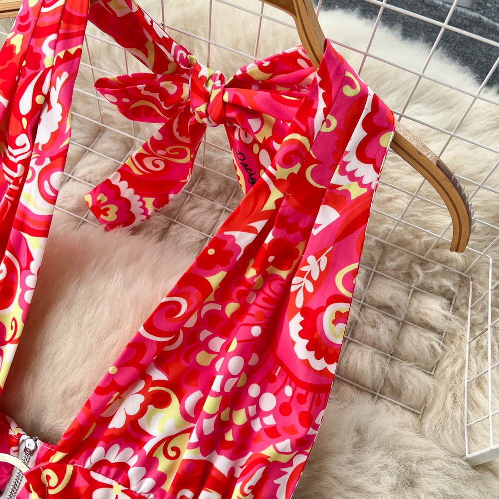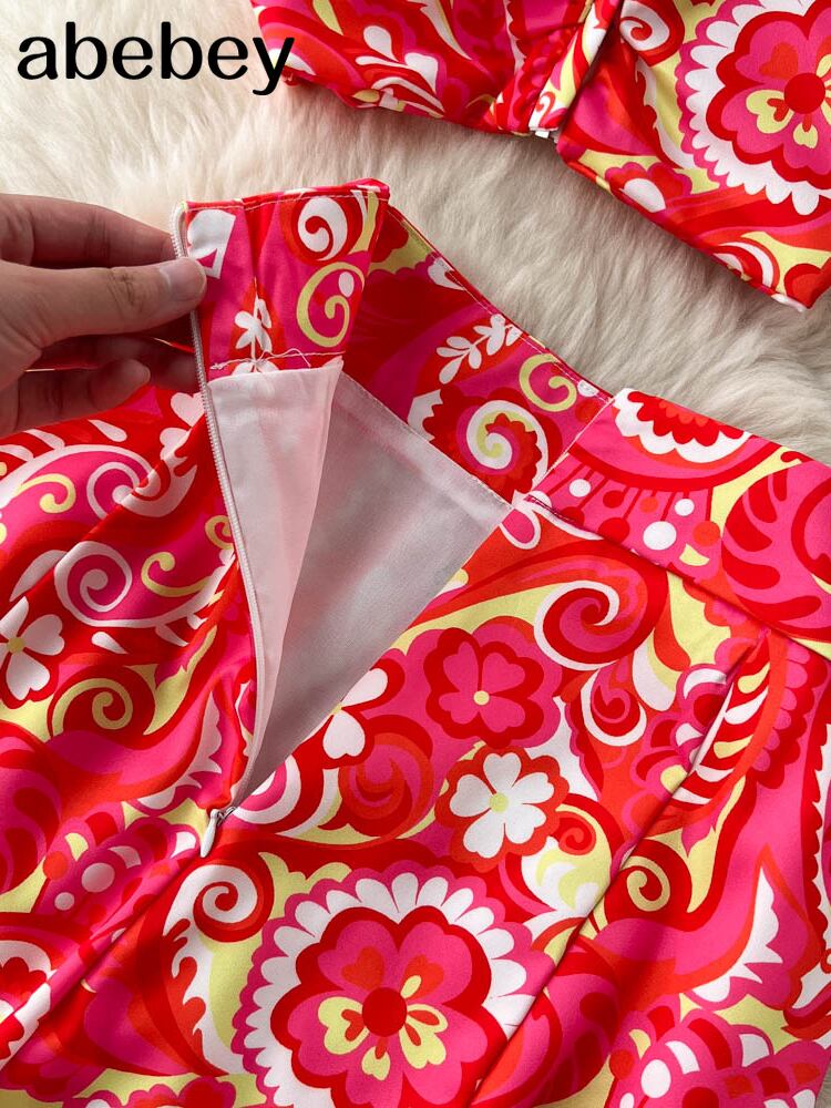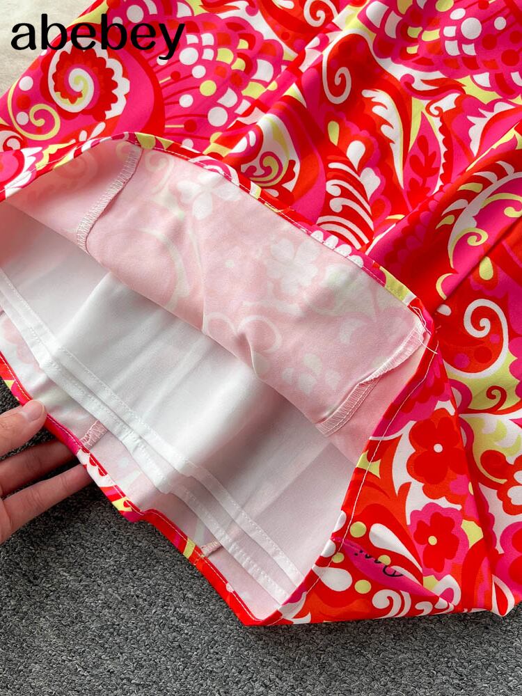 女性夏レトロフローラルプリントスカートセットセクシーノースリーブショートストラップトップス&ウエストプリーツスカートツーピーススーツ サマー 夏物 花柄 Abe94731258502