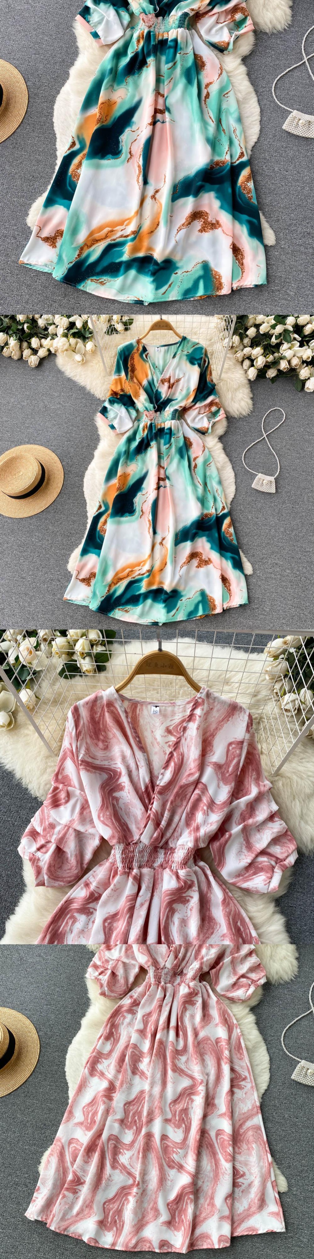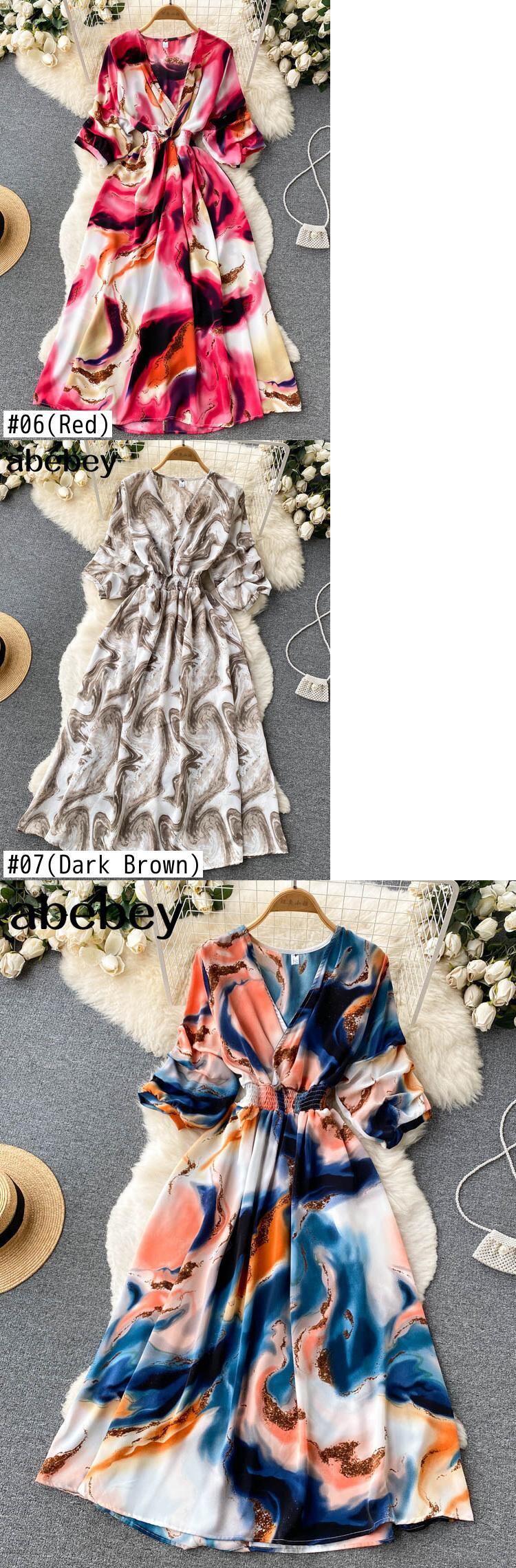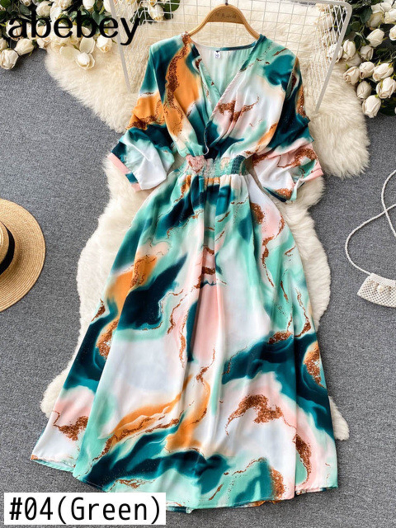 夏の女性フローラルマキシロングドレスVネックシフォンウエストAラインフラワープリントVestidosVacationBeach Robe サマー 夏物 ビーチ 花柄 フラワーデザイン Abe75058992892