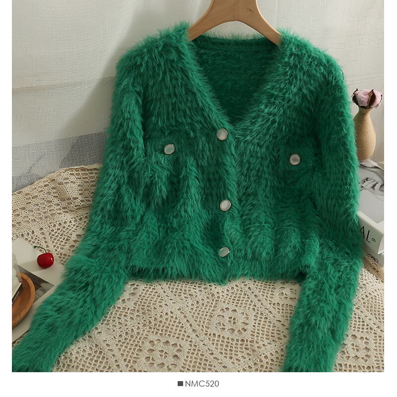カーディガンレディースセーターグリーンVネックニット婦人服無地ピンクウォームルースコート2022春 スプリング 春物 ソリッドカラー Abe71722491021