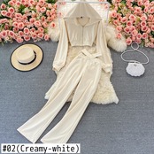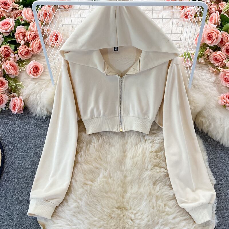 2ピーススーツ女性2022秋フード付きジッパーショートカーディガンコート+ロングパンツスーツのクロスウエスト オータム 秋物 Rhc24060351141
