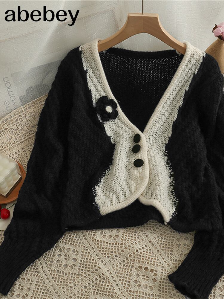 秋のカーディガン女性スウィートニットセーター居心地の良いプレッピーオルチャンかわいいホリデールーズニットコート厚手のプル 大人ガーリー キュート カジュアル オータム 秋物 Abe81905794765