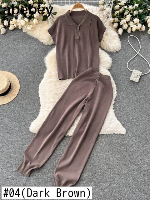 女性ニットセーターツーピースセットサマールーズプルオーバーセータートップス&ワイドレッグパンツニットウェア2ピーススーツ 夏物 Abe18012096712