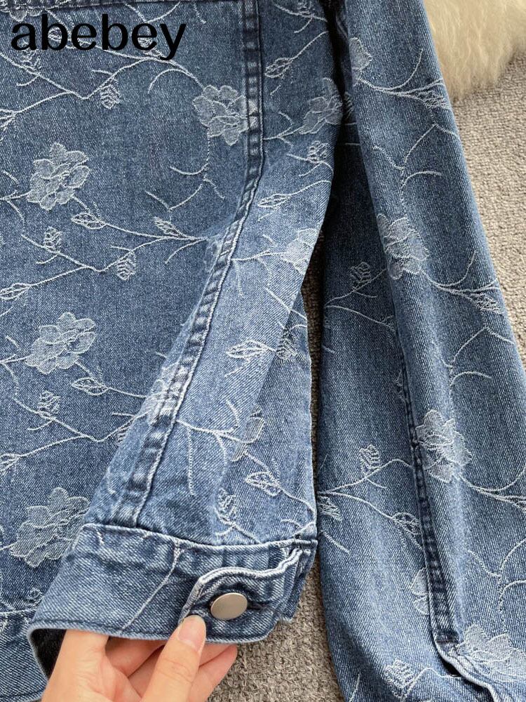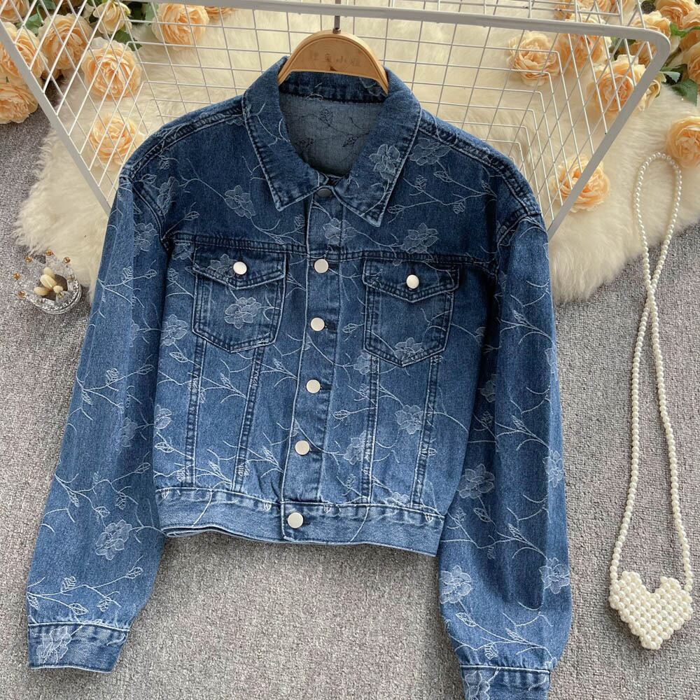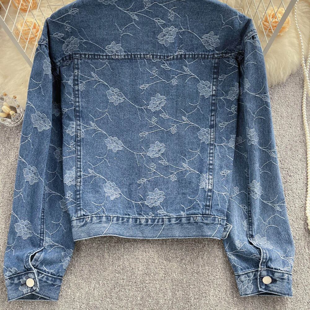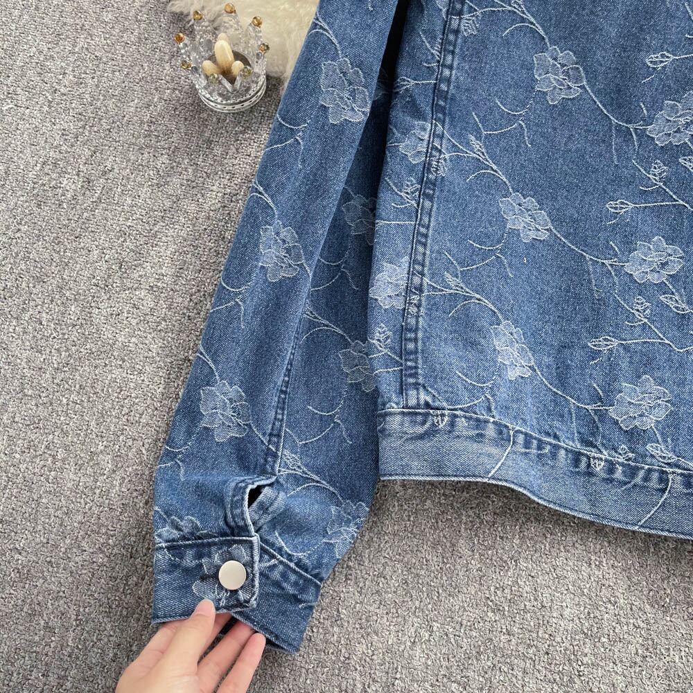 レトロデニムジャケット2022長袖ラペルルーズデニムプリントフローラルジャケットAZTECデニムコート ロング 花柄 Abe15547771106