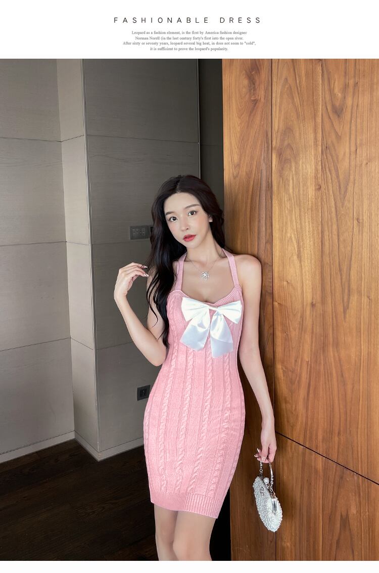 ニット2点セット女性秋ニットセット長袖ニットカーディガン+セクシーバックレススリムホルターストラップワンピースツーピーススーツ ロング オータム 秋物 Rhc65132275219