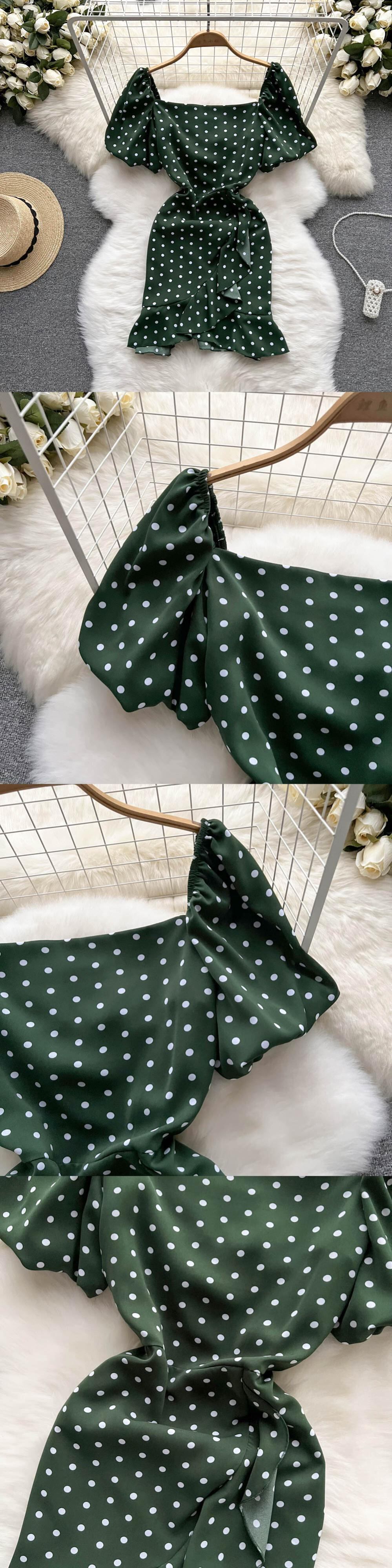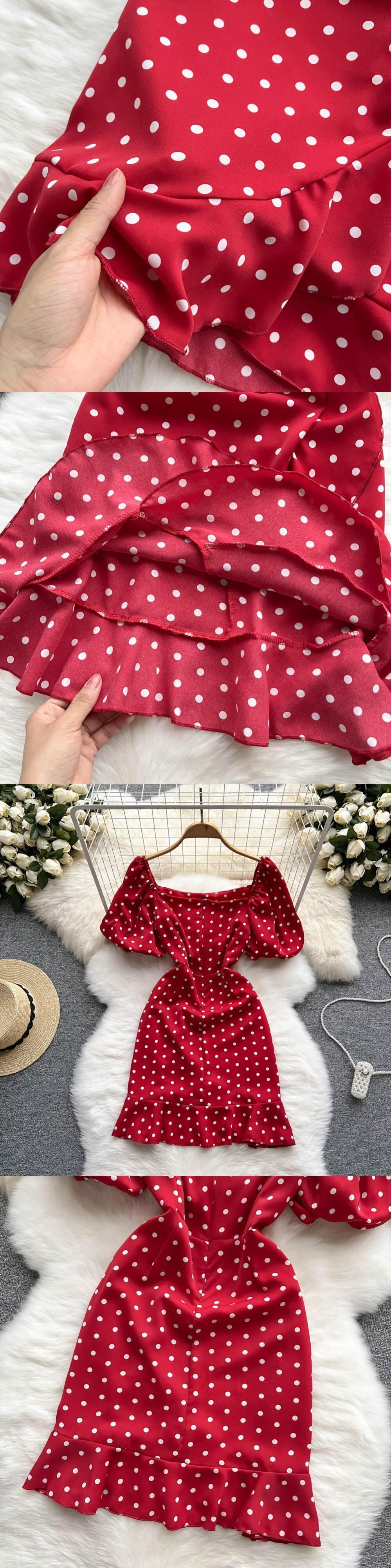 スクエアカラー水玉ミニドレス女性用タータンレースドレススウィートガールズ2022AラインVestidos ショート 大人ガーリー キュート カジュアル スクウェア Abe84712131325