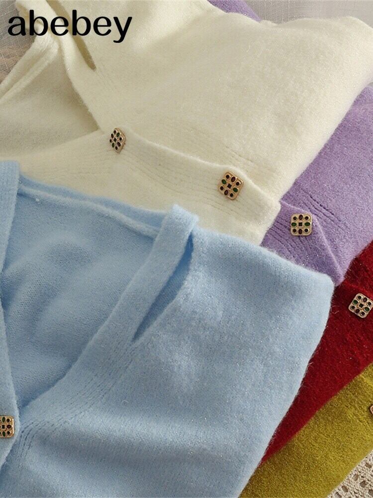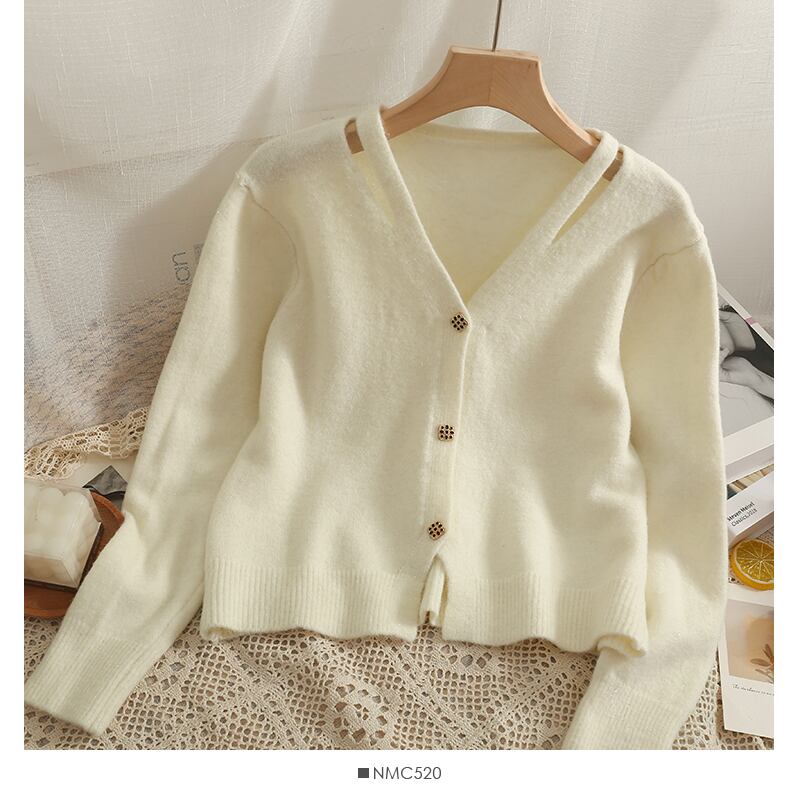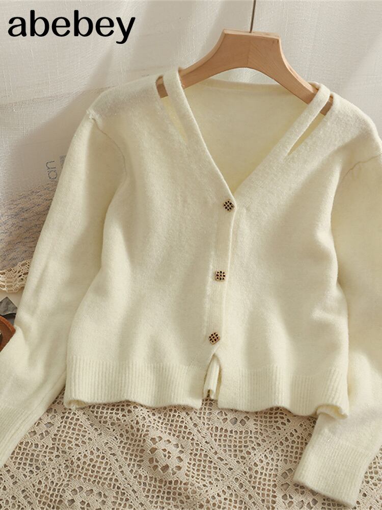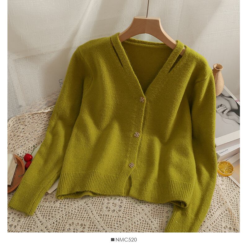女性ニットカーディガンセーター秋長袖ルーズコートボタン厚手のVネックソリッドトップス2022 ロング オータム 秋物 ソリッドカラー Abe19417429423