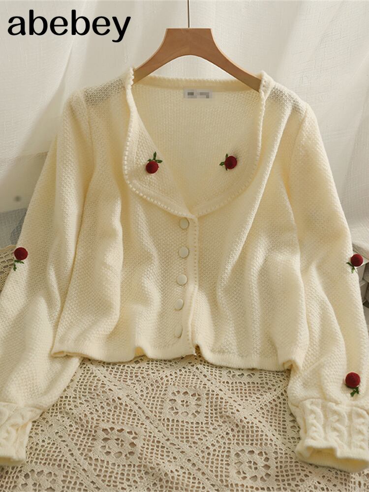 2022 秋カーディガン女性スウィートニットセーターコージープレッピーオルかわいいホリデールースニットコート 大人ガーリー キュート カジュアル オータム 秋物 Abe71820468974