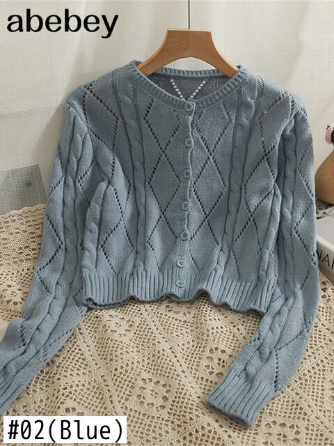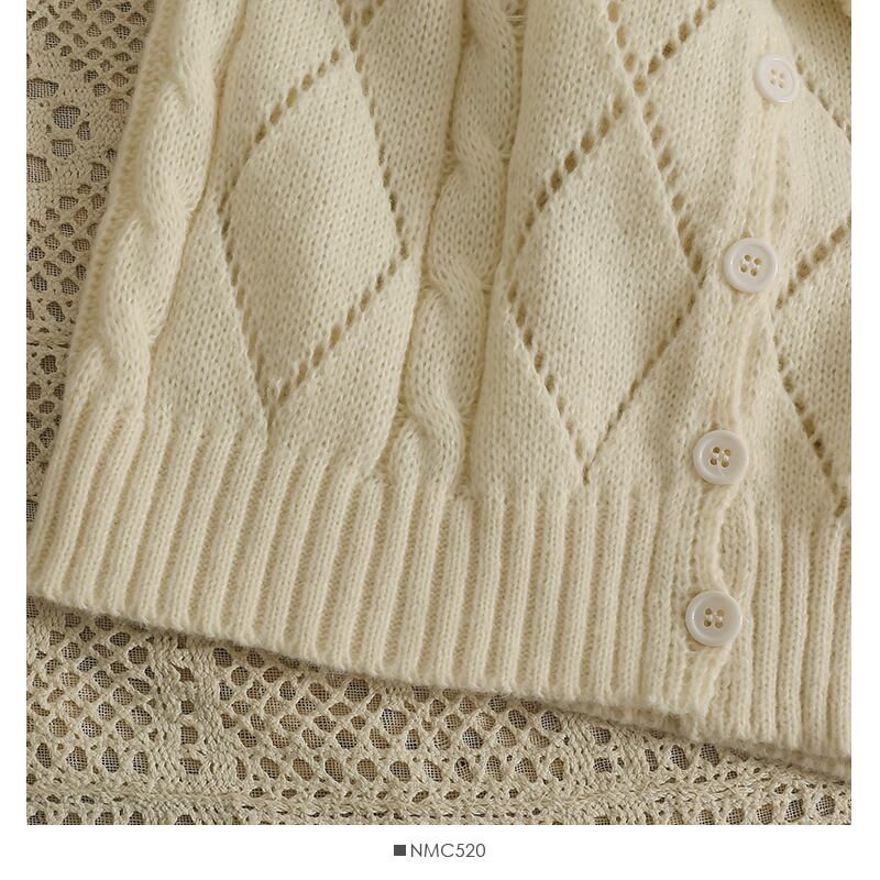 ステッチディテールクロップニットトップFCOP付きレディースボタンケーブルニットカーディガン Abe26253986029