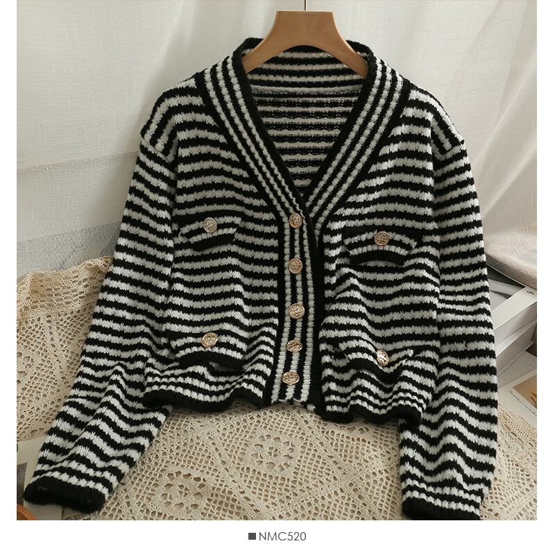2022年女性秋ストライプカーディガンニットセーターVネック長袖中空アウトアウター ロング オータム 秋物 Abe82591790174
