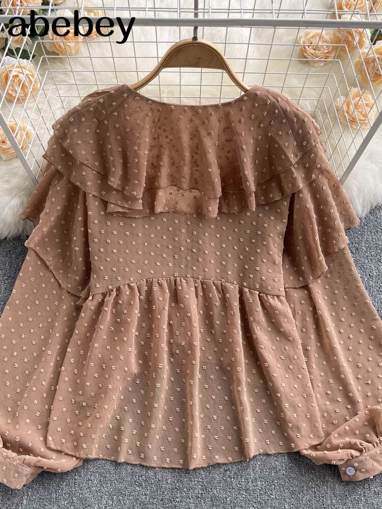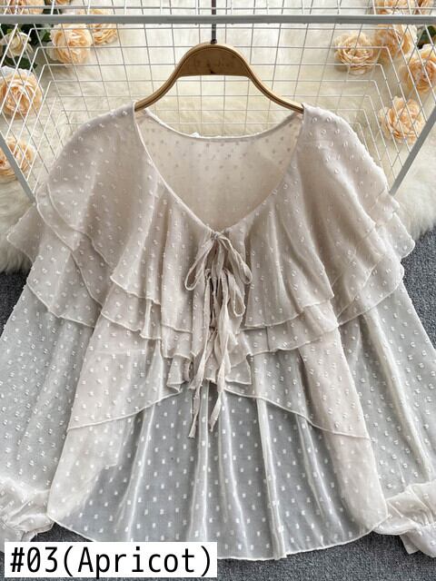 レディース メッシュ シアー ブラウス シースルー ランタン 長袖 ブラウス フリル 透け感 白シャツ ロング ホワイト ラッフル Abe32031653778