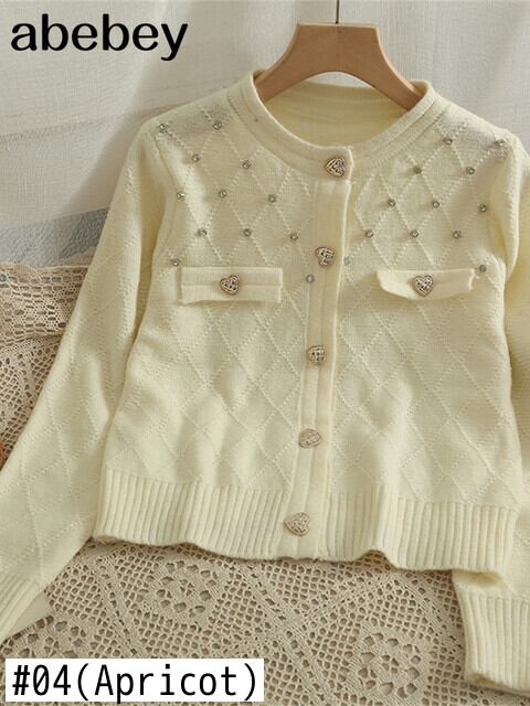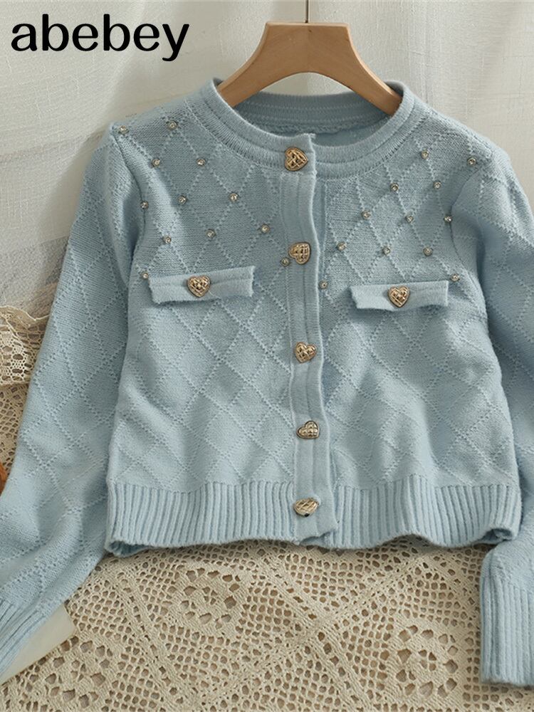秋の女性 o ネック長袖高級ビーズ装飾ニットカーディガンセータートップス ロング オータム 秋物 Oネック Abe2482491357