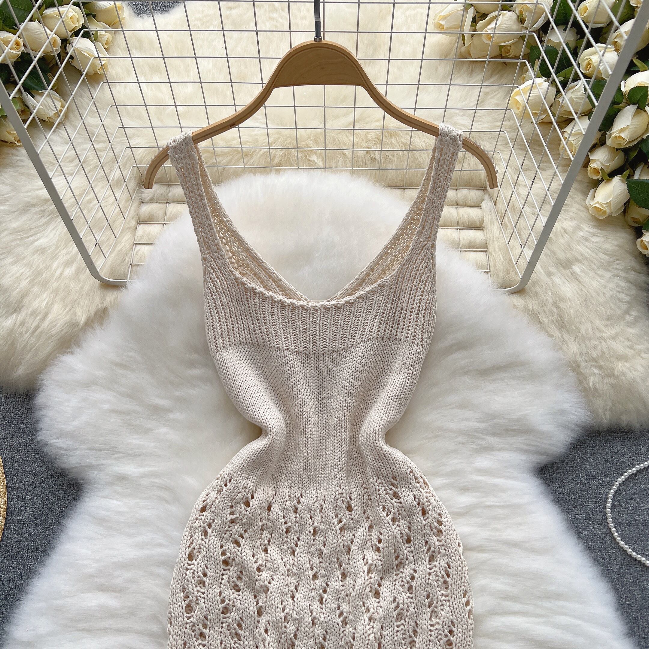 かぎ針編みドレスニットカットアウトドレス Jurk 婦人ビーチドレス女性 2022 ストラップノースリーブ Vestidos 無料 Abe95704351146
