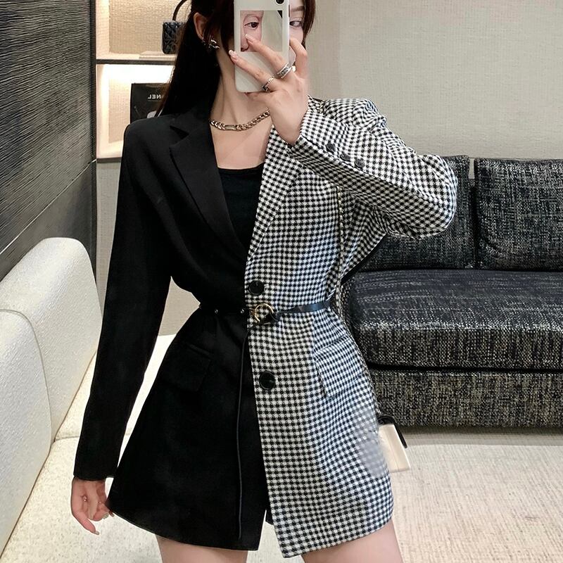 女性パッチワークブレザースーツコート2021秋フルスリーブノッチ付きカラーシングルブレストジャケットスーツトップス オータム 秋物 Rhc17251580242