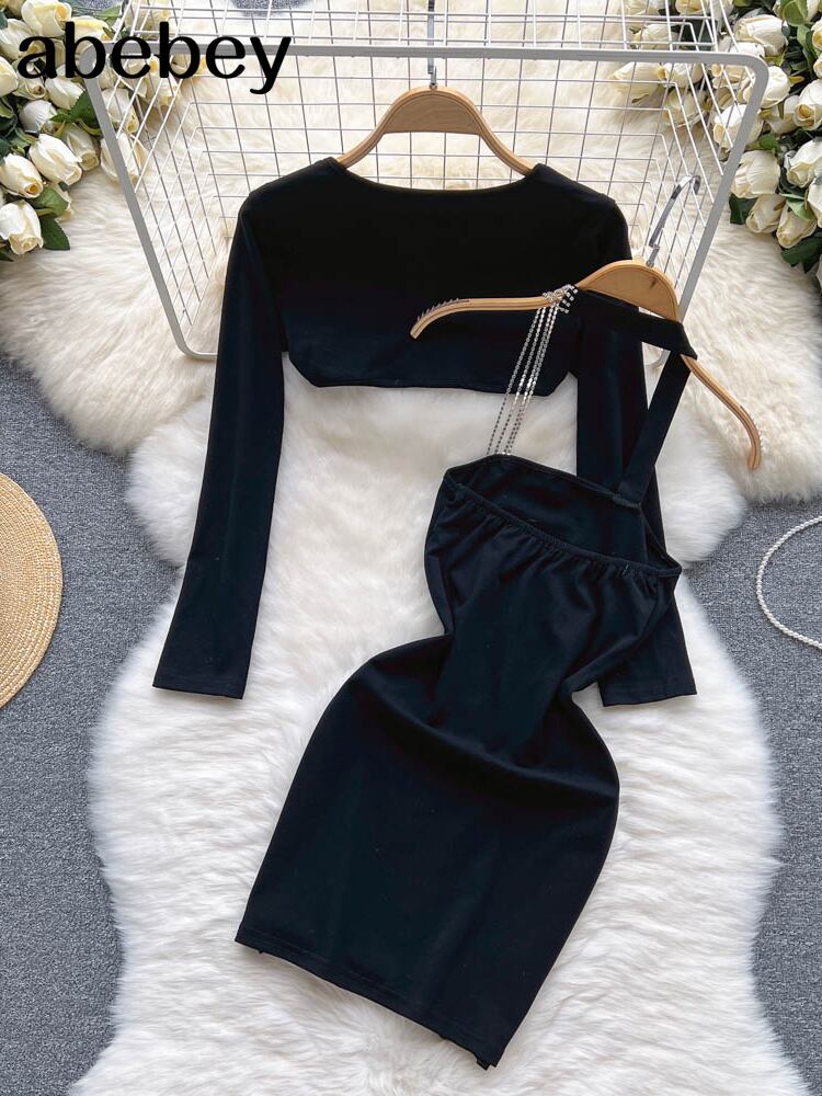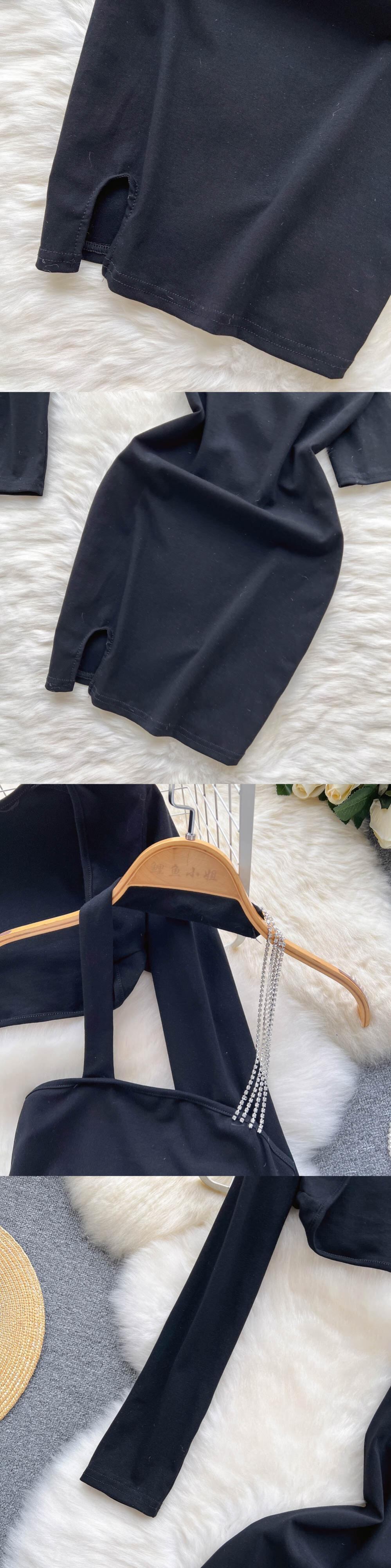 チェーン背中の開いたセットの女性の夏 2022 オープンネック長袖ブラウスホルターミニスカートセクシーなツーピーススーツ ロング サマー 夏物 Abe85018883892