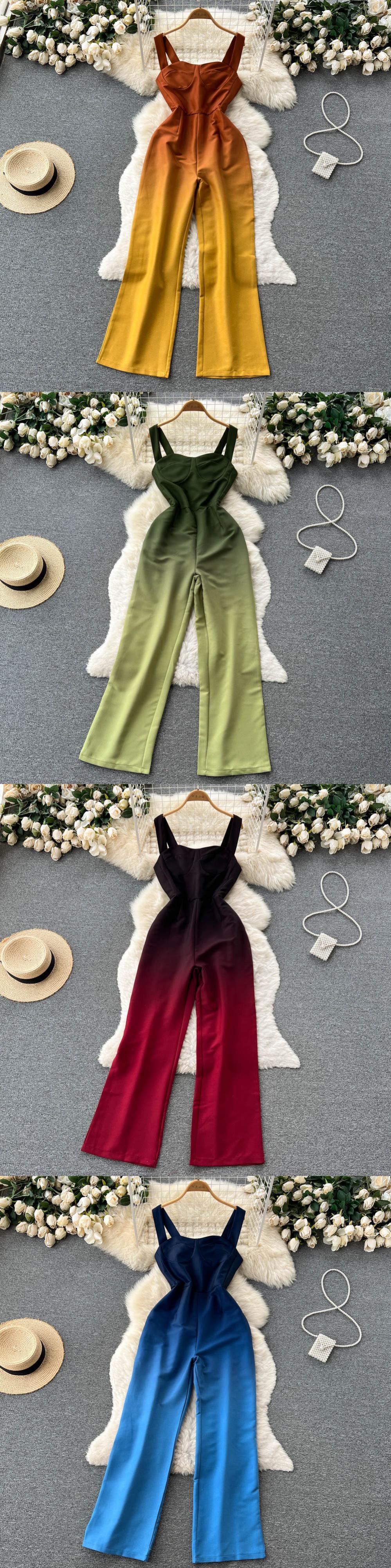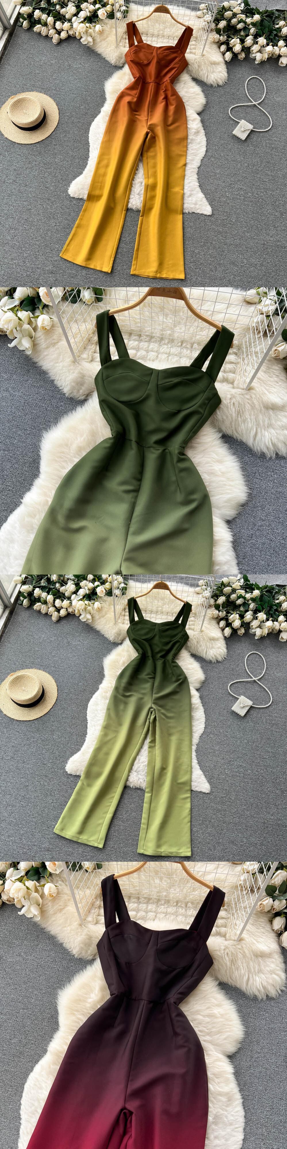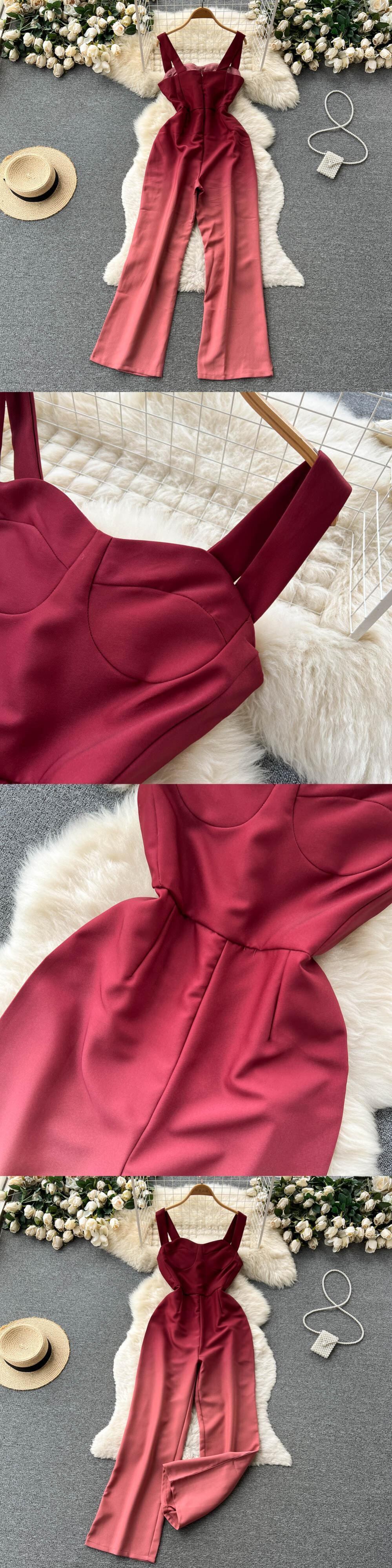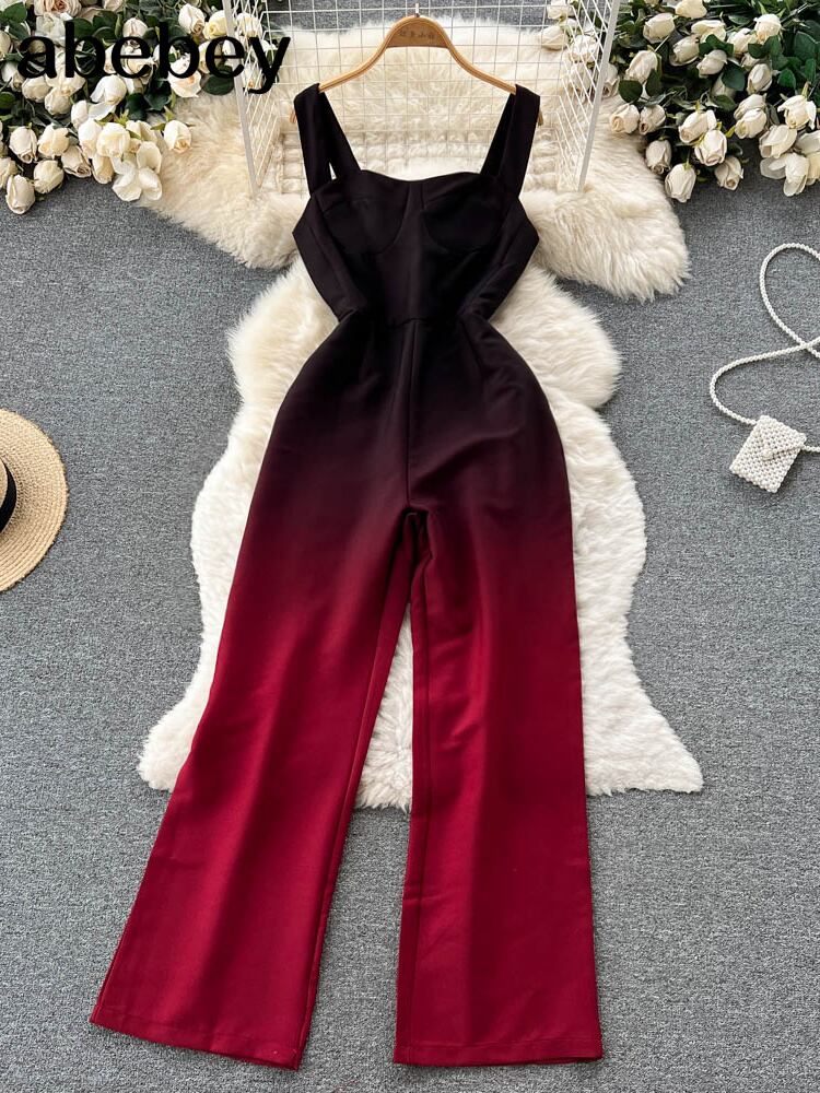 夏のジャンプスーツ女性遊び着ノースリーブスパゲッティストラップ背中の開いたセクシーなクラブウェアロングロンパースオーバーオール サマー 夏物 Abe81014150394