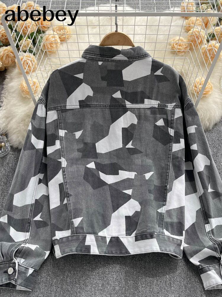 ヒョウ柄デニムジャケットポケットルーズ長袖女性シングルブレストストリート RetroThin デニムコート ロング レトロ Abe40235649533