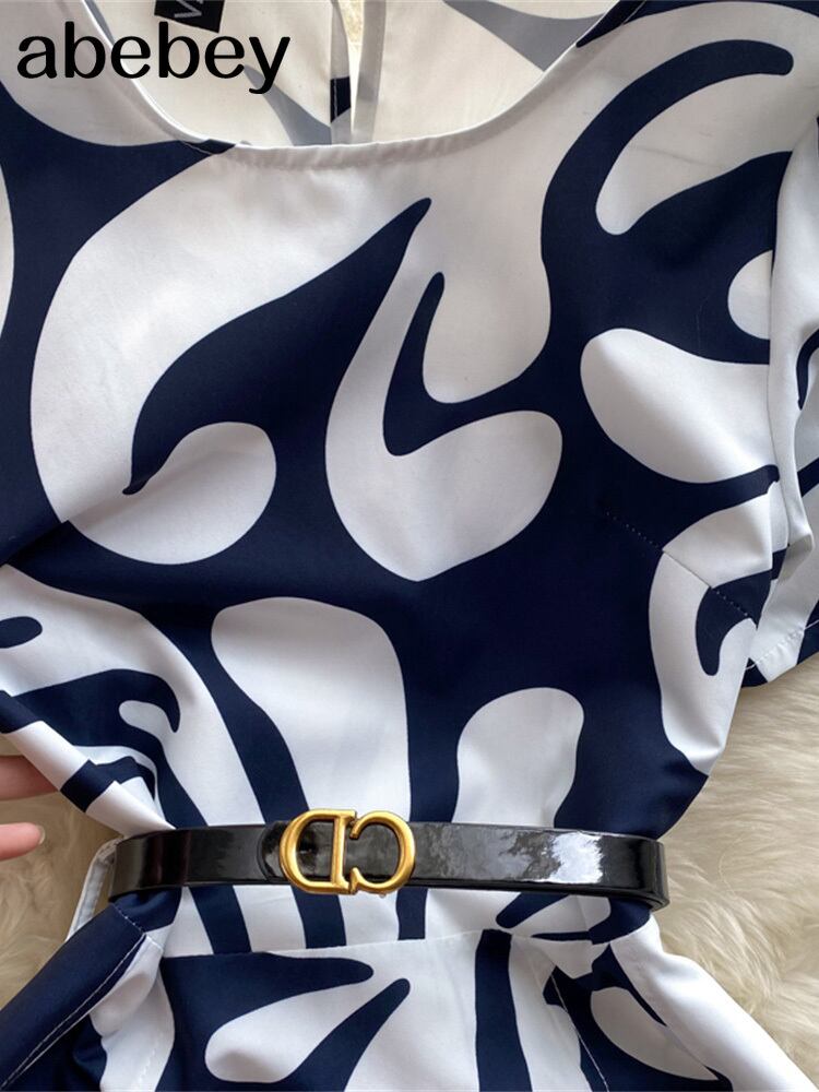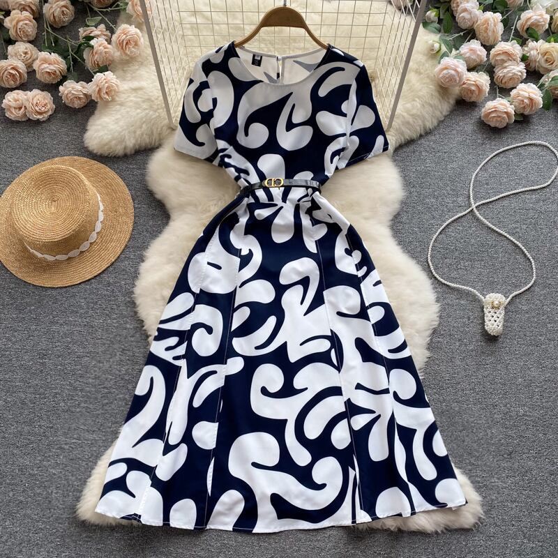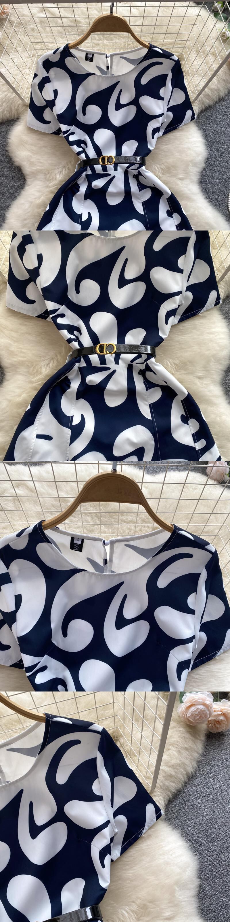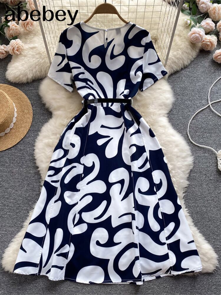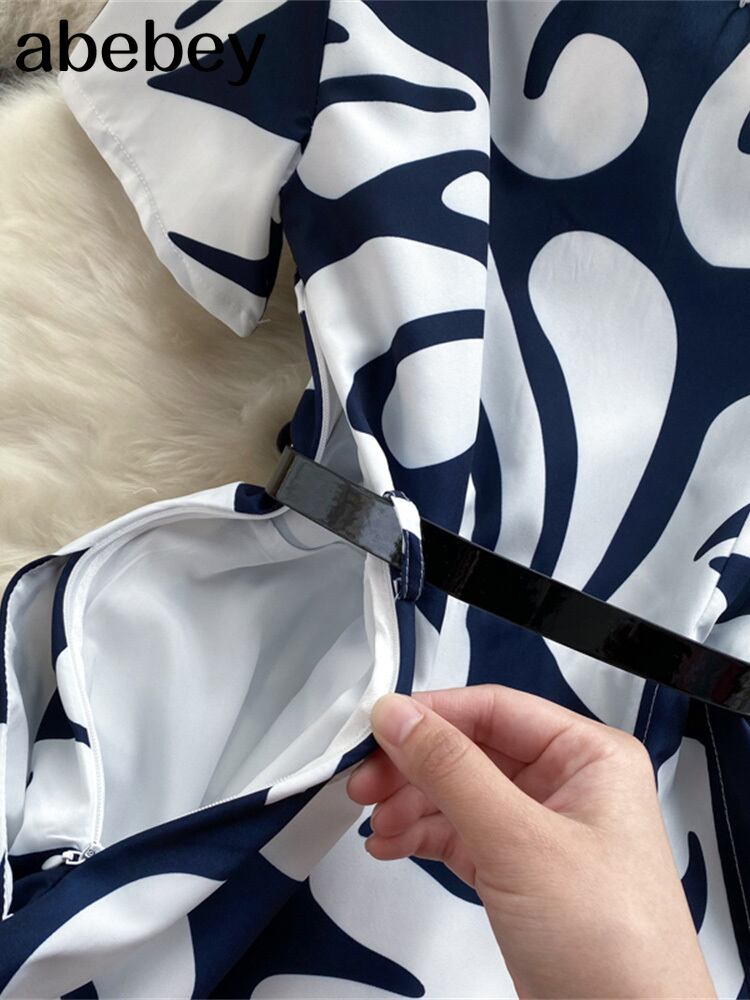 滑走路ドレス 2022 夏の女性の半袖幾何学模様事務ミディドレスとベルト ショート ハーフスリーブ サマー 夏物 ハーネス 会社 学校 通勤や通学にも Abe7633312968