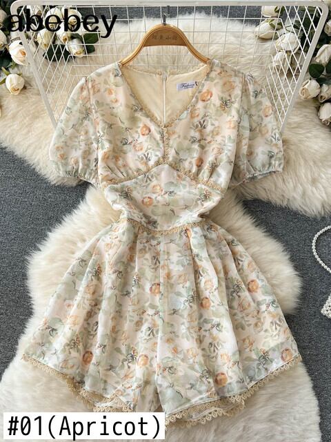 夏の女性の花柄ノースリーブジャンプスーツロンパースレースアップショーツワイドレッグホリデールースジャンプスーツ サマー 夏物 ブルマー ワイドパンツ Abe68397131611