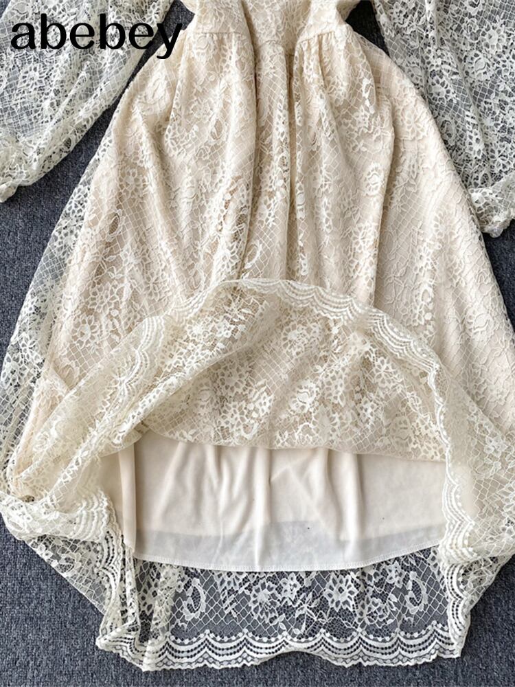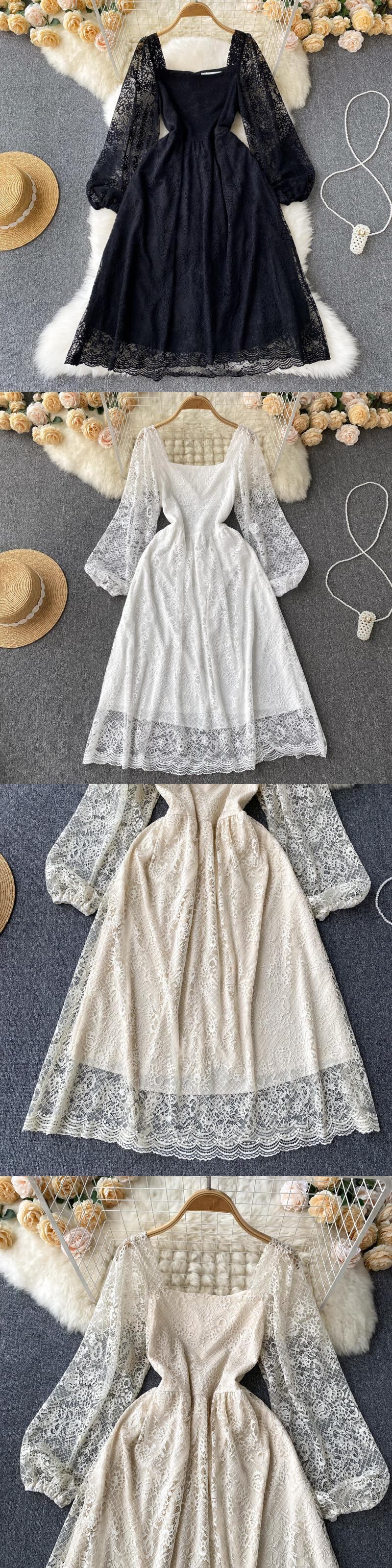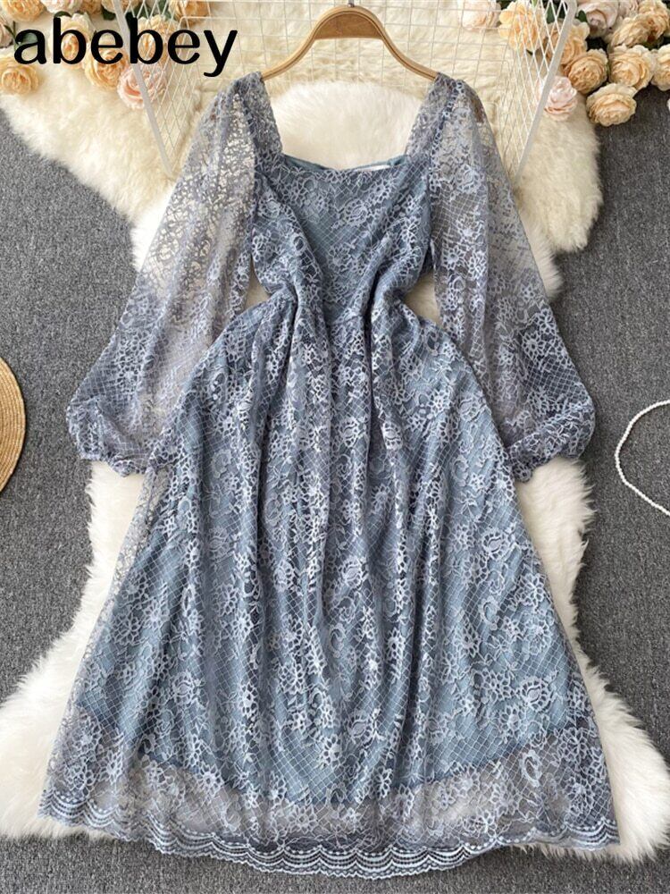 スクエアカラーのレースの妖精のドレスの女性のセクシーなシアーガーゼミディドレス Vestidos デフィエスタ スクウェア Abe34611526265