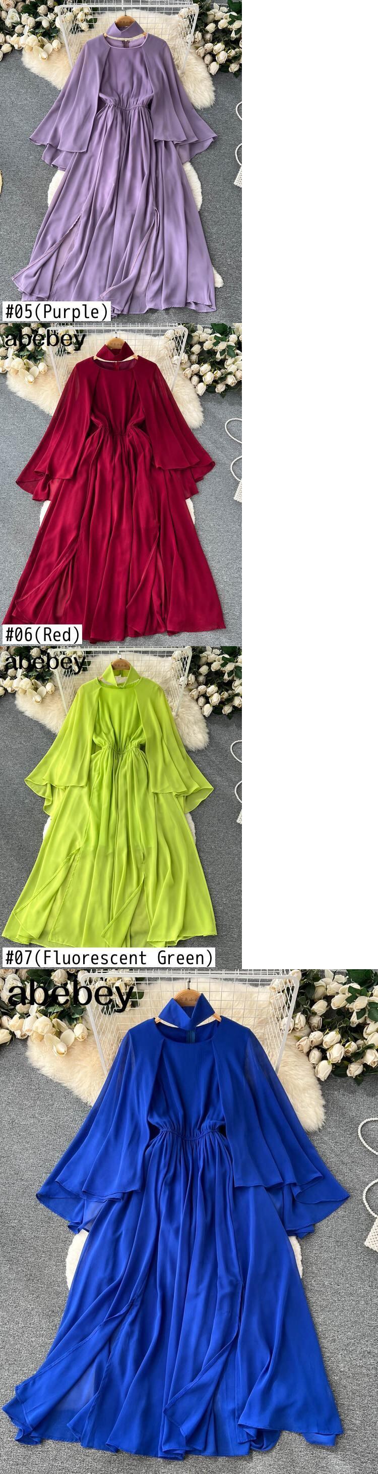 秋の女性ショール ロング ドレス紫/赤/緑 O ネック ウエスト A ライン スプリット マキシ Vestidos オータム 秋物 Oネック Aライン グリーン パープル Abe83474767261