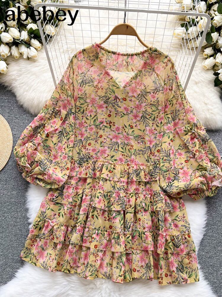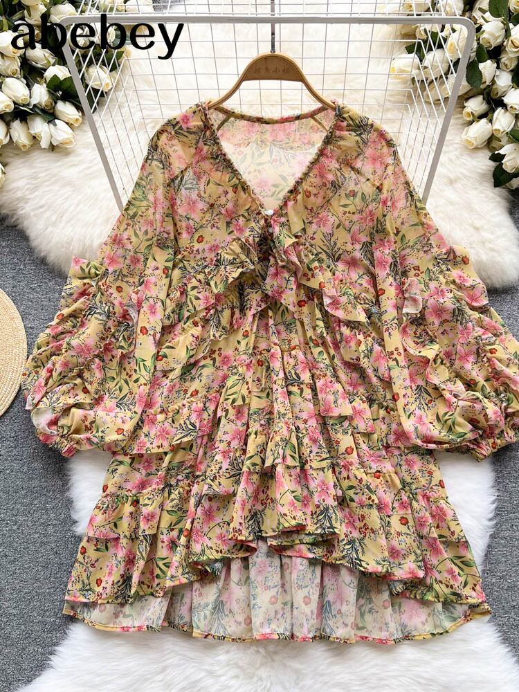 女性プリント パーティー ビーチ ドレス V ネック長袖レディ セクシーな気質春秋 2022 ロング スプリング 春物 オータム 秋物 Vネック Abe30267826591